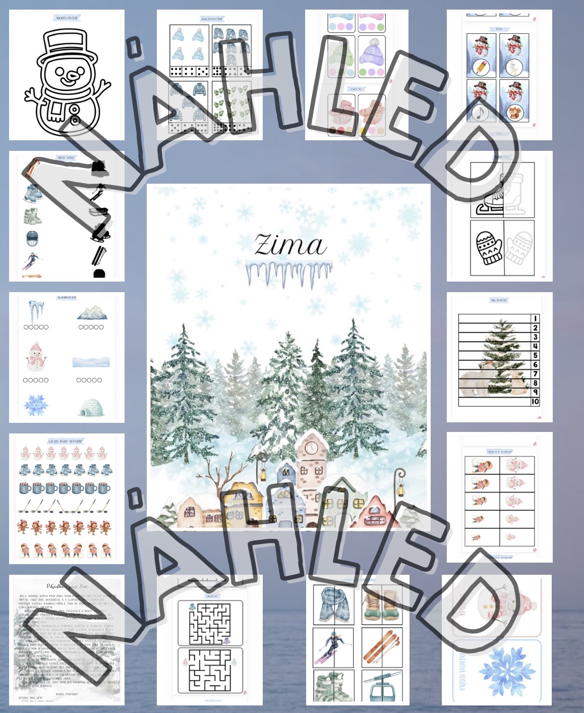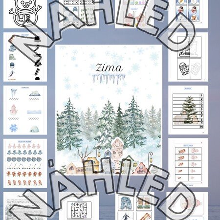 Rozsáhlý vzdělávací soubor plný zimních aktivit pro děti v MŠ. Materiály rozvíjí zrakové vnímání, logické myšlení, jemnou motoriku, řeč i předmatematické dovednosti.