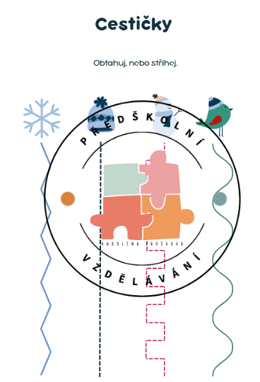 - Cestičky – obtahování a stříhání pro rozvoj grafomotoriky a práce s nůžkami.