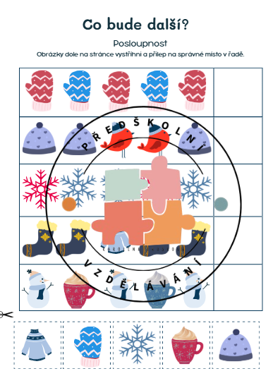 - Posloupnosti – vystřihování a doplňování obrázků do správného pořadí.