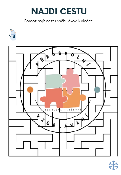 - Labyrinty – najdi cestu sněhulákovi k vločce.