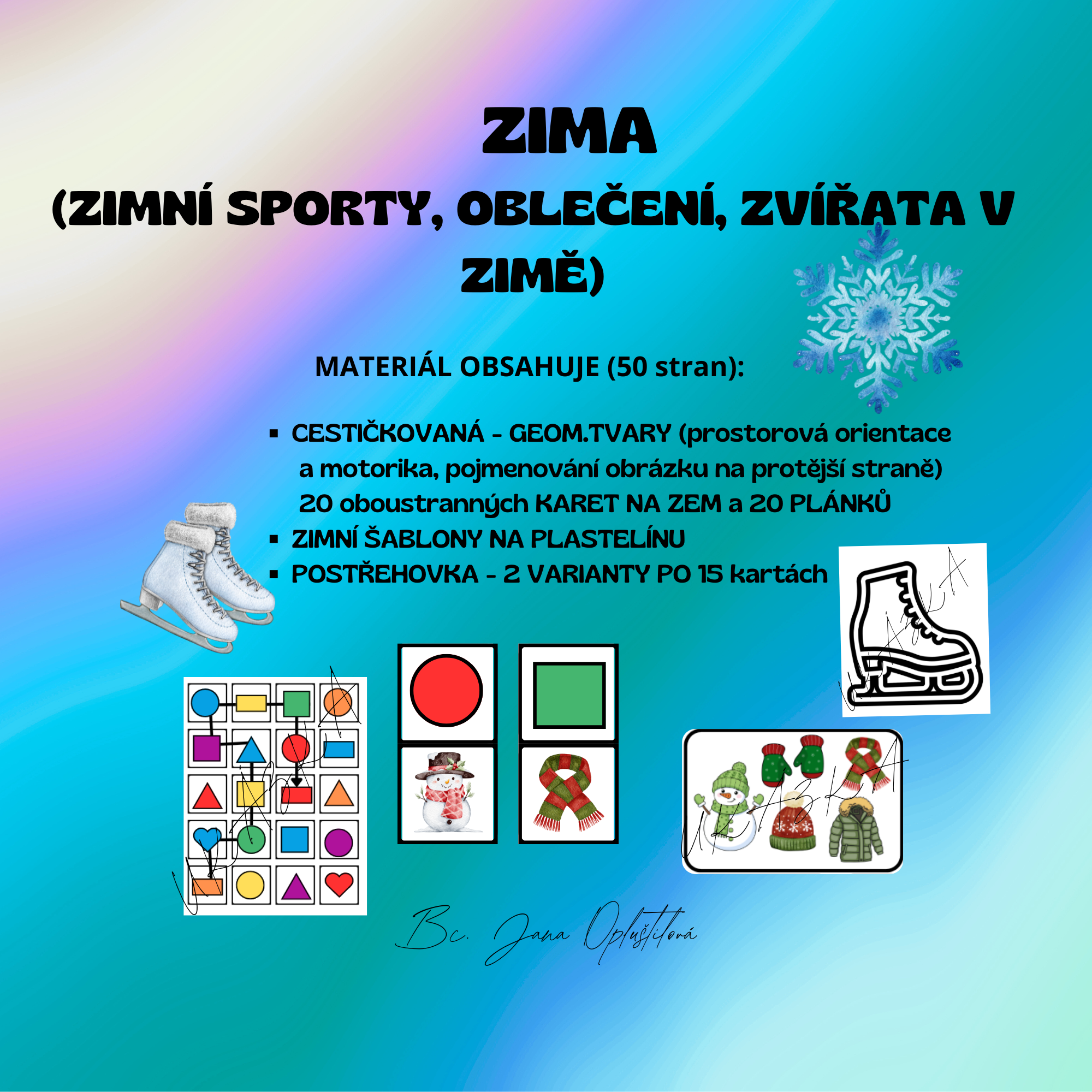 Tento materiál skvěle využijete během zimních měsíců jak uvnitř, tak i venku! Je ideální pro školky, družiny i volnočasové kroužky. Materiál doporučuji zalaminovat kvalitní pevnou folií.