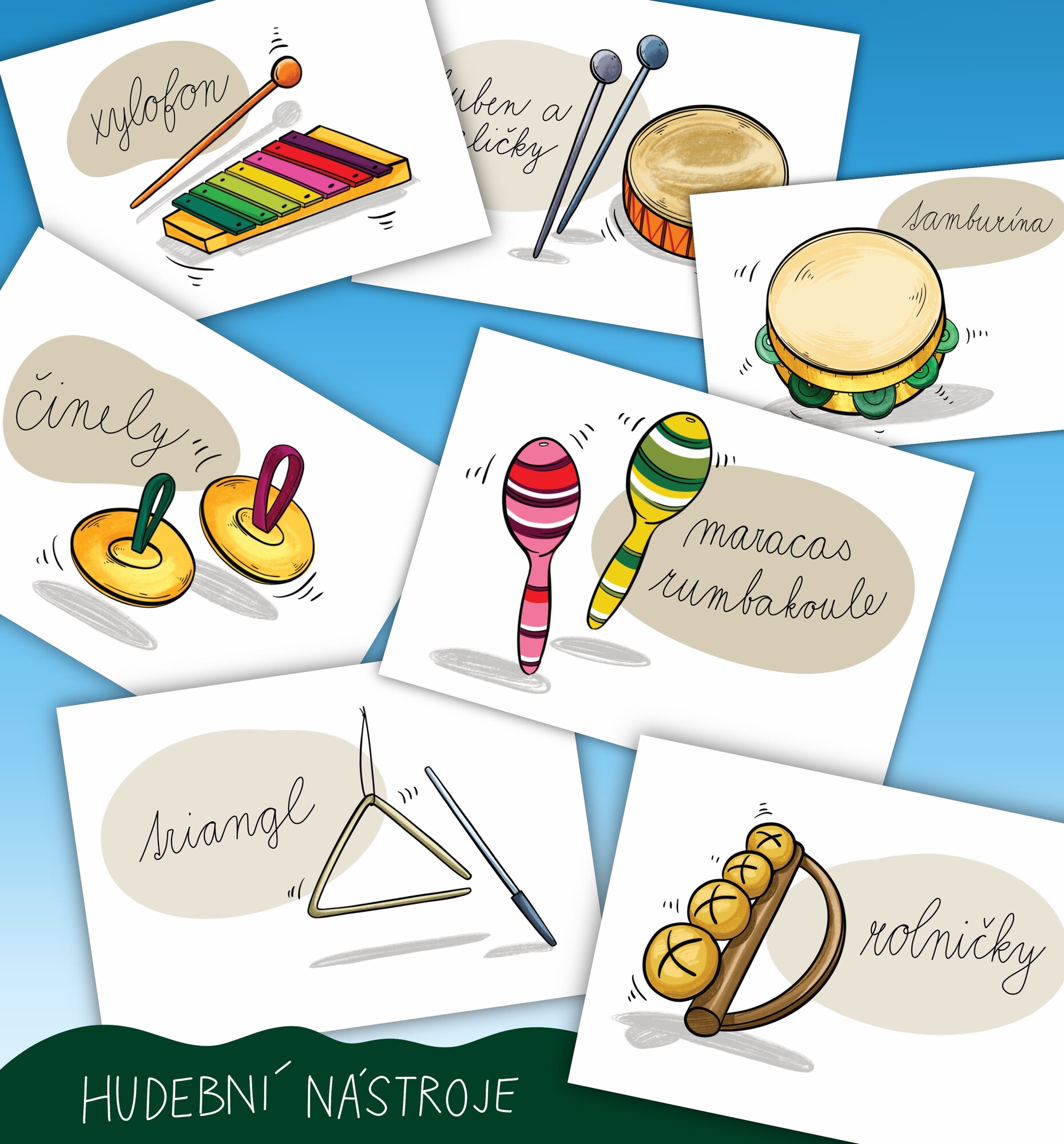- demonstrační obrázky Orffových hudebních nástrojů
