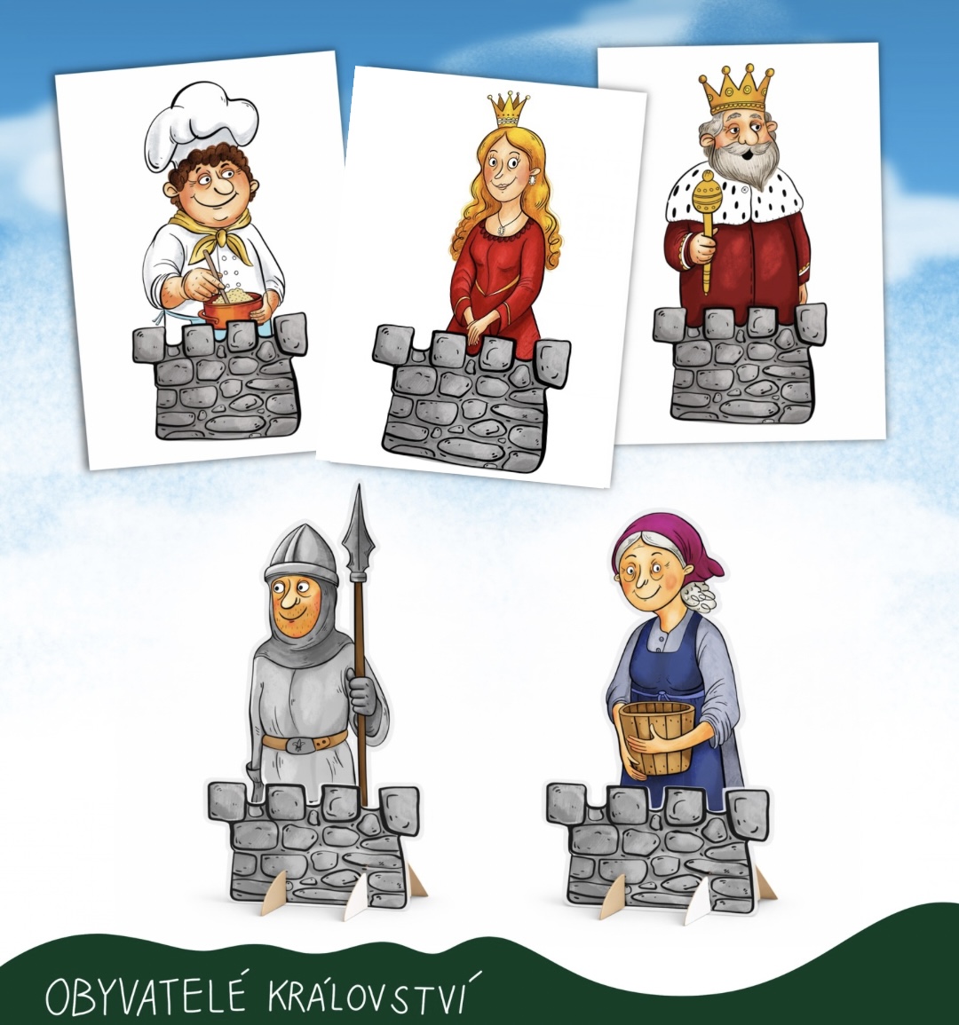 - demonstrační obrázky obyvatel království (veselá i smutná verze)
