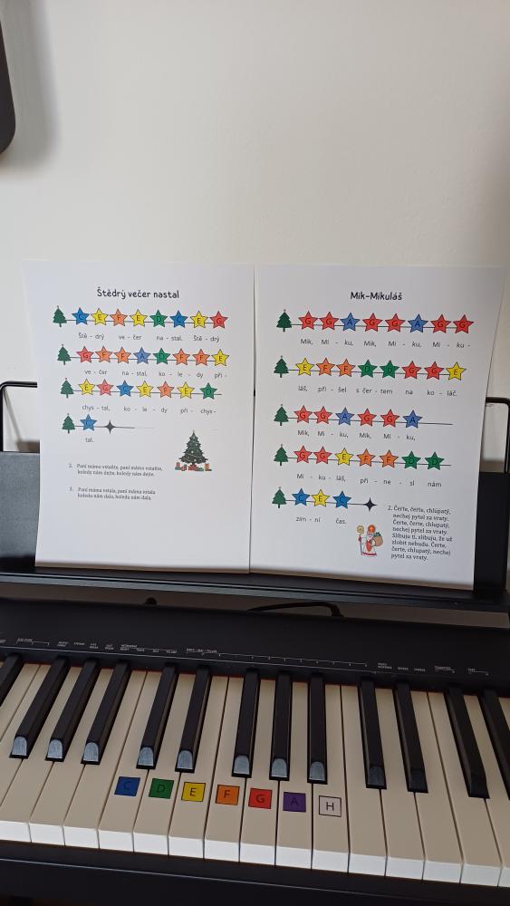 1. Jednoduchý trénink na klavír – na piano nalepíte barevné značky (součástí) a můžete začít 🙂.
