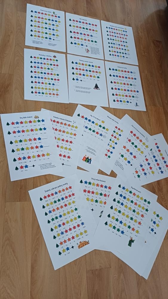 15 českých vánočních koled v jednoduchých barevných předlohách využitelných pro: