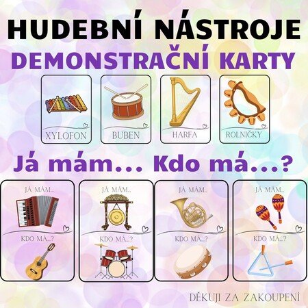 Hra je určena alespoň pro 2 hráče. děti říkají: “Já mám xylofon. Kdo má elektrickou kytaru?” a takhle pokračuje další do vyčerpání kartiček.