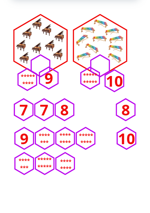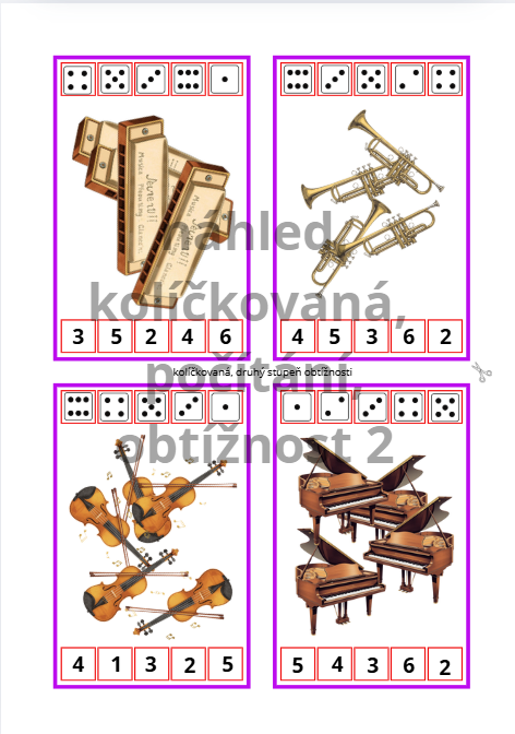 - kolíčkovaná ve 2 stupních obtížnosti (označování počtu puntíků nebo číslic; překrývání obrázků)