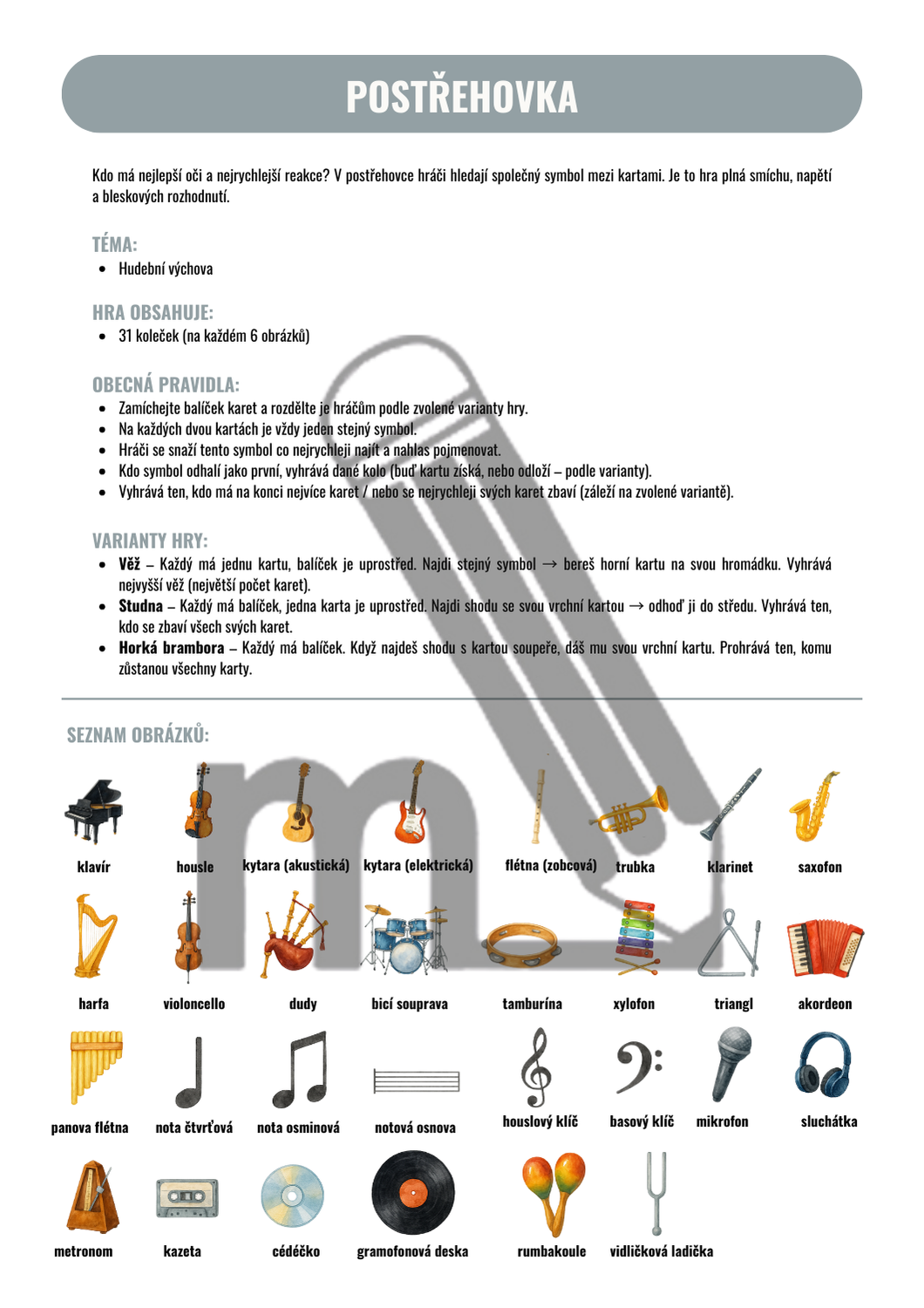 Kdo má nejlepší oči a nejrychlejší reakce? V postřehovce hráči hledají společný symbol mezi kartami. Je to hra plná smíchu, napětí a bleskových rozhodnutí.