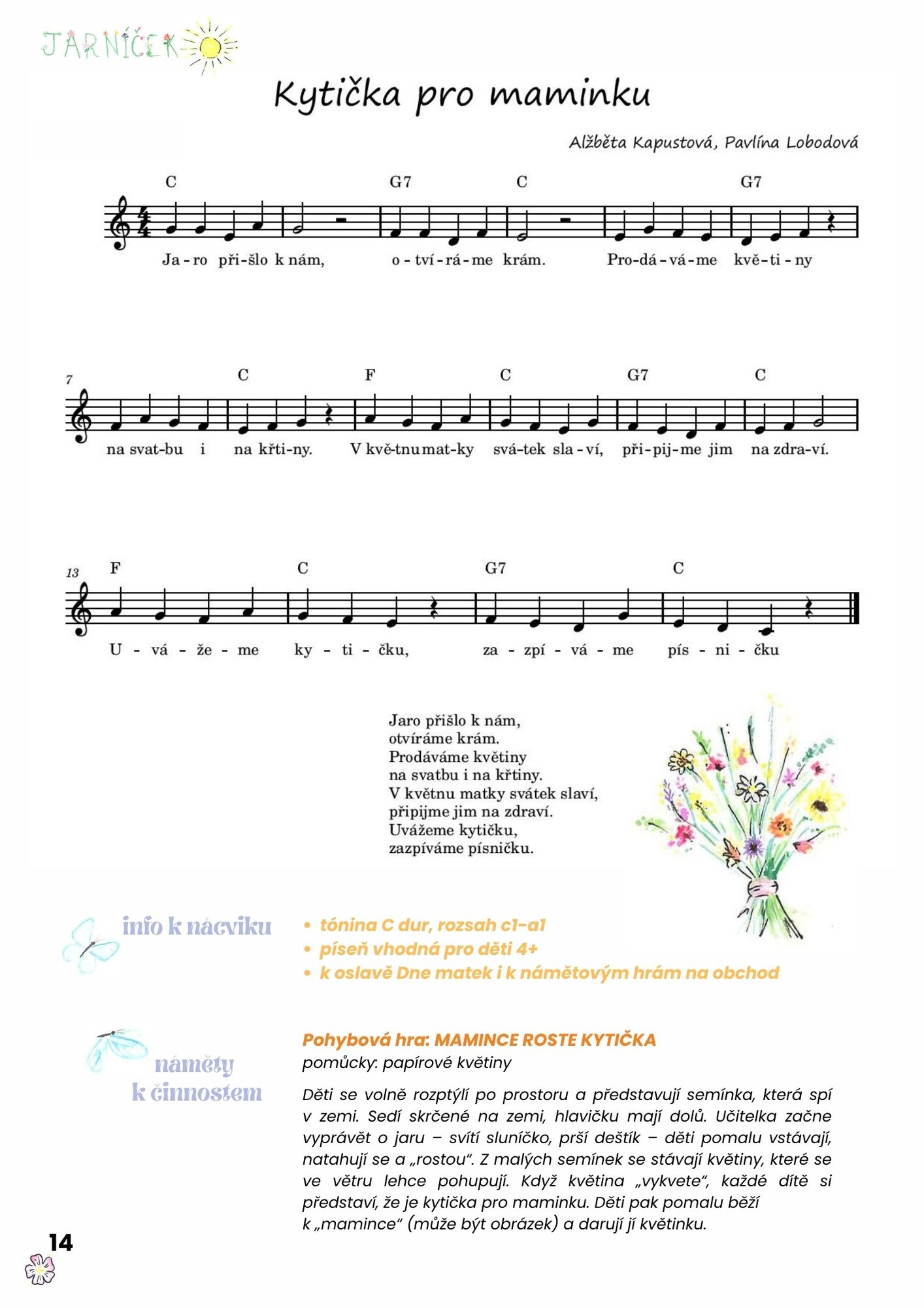 - od nejjednodušších popěvků k náročnějším písním jarního období (rozsah písně, tónina, doporučení věku)