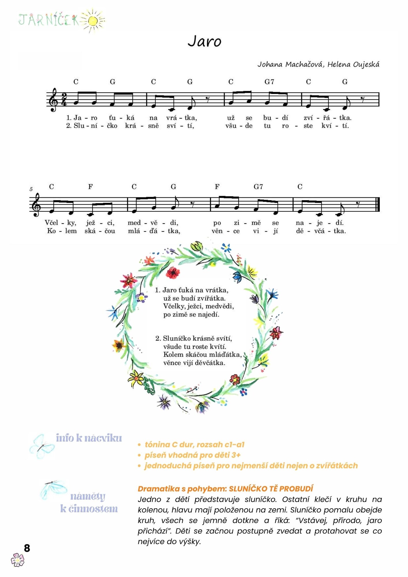 Tematický zpěvník 20 autorských písní o jaru pro děti předškolního a mladšího školního věku.