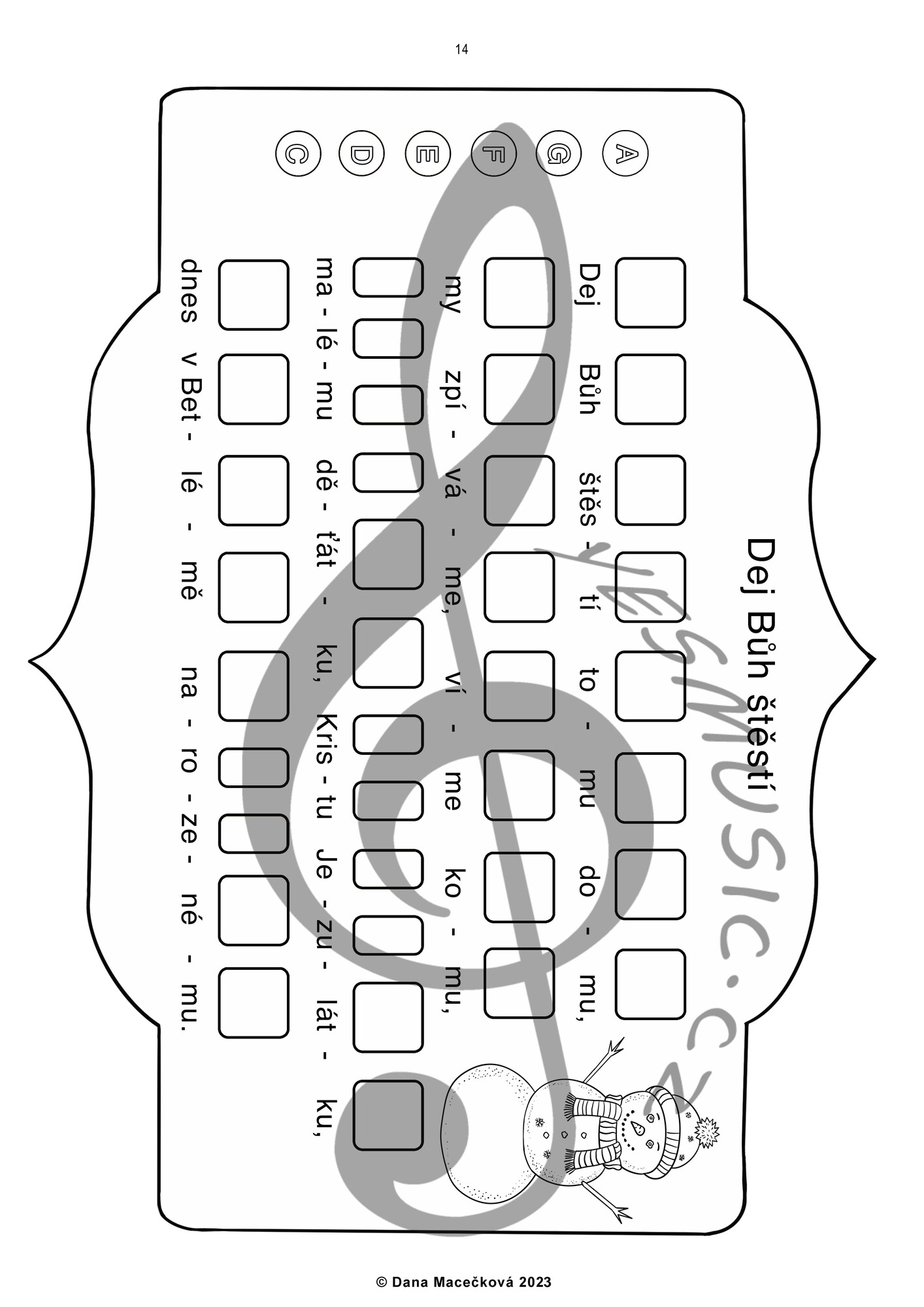 Výukový materiál do hudební výchovy - 15 známých koled pro skupinové hraní. Každá koleda je připravena v šesti verzích, abyste si mohli vybrat, jak s ní budete pracovat: