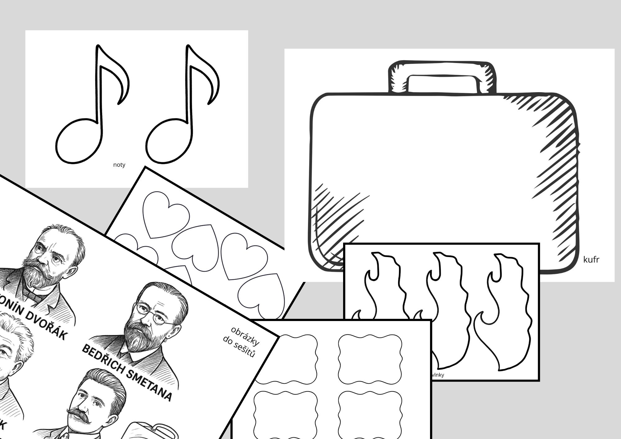 - Ilustrované portréty všech skladatelů v realistickém i černobílém provedení (pro tisk, nalepení, tvoření)