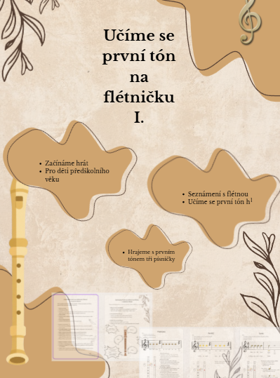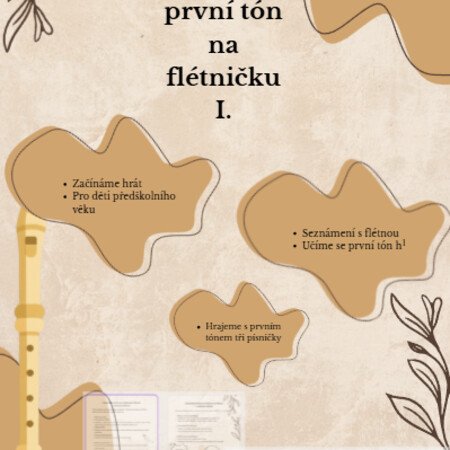 Soubor slouží jako metodický a praktický průvodce pro úplné začátky hry na zobcovou flétnu, který děti provází od správného držení těla a nástroje až po nácvik prvního tónu h1. Práce s materiálem začíná teoretickou přípravou, kde se děti učí správnému postoji „jako pravítko“, technice dýchání slabikou „TU“ a preciznímu zakrývání dírek bříšky prstů. Poté následuje praktická část s písničkami „Vítání jara“, „Petrklíč“ a „Žabák“, které jsou v notovém zápisu doplněny o názorné schéma hmatu a rytmickou nápovědu, což umožňuje dětem postupně upevňovat délku not, práci s dechem a rytmizaci textu.
