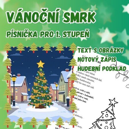 Materiál obsahuje text písně s omalovánkou, notový zápis a hudební podklad k autorské písničce „Vánoční smrk”. Písnička je vhodná do předvánočních hodin hudební výchovy na 1. stupeň, na vánoční vystoupení nebo ke zpívání jen tak pro radost. 🎼🎄