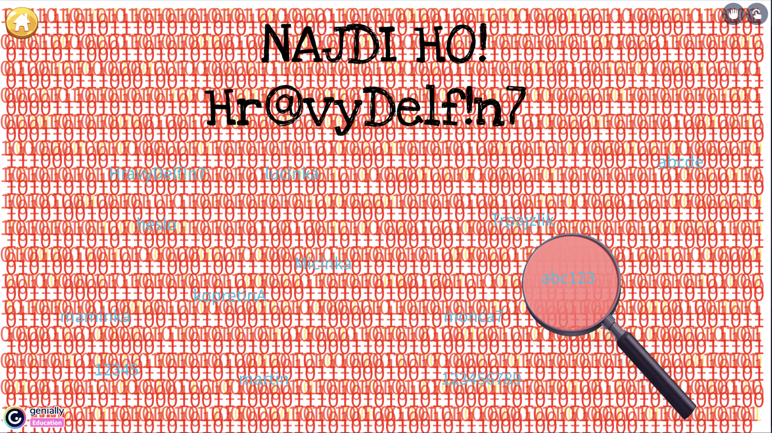 - 2. - 4. úkol - pomocí lupy hráč hledá jedno dané silné heslo mezi ostatními slabými