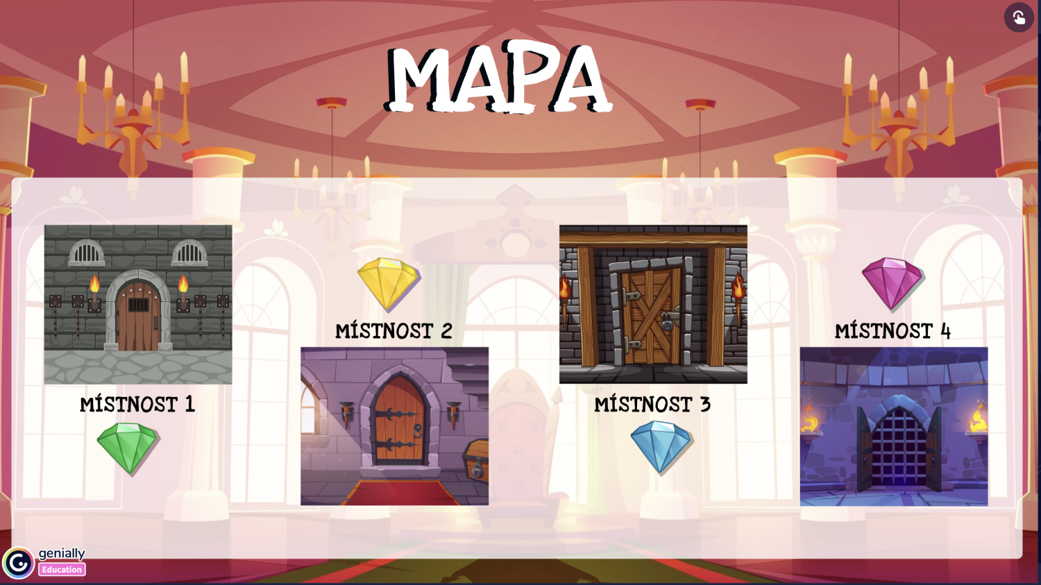 Jde o typ únikové hry, kdy děti musí postupně splnit 4 hlavní části, skládající se z dílčích úkolů. Věkově je vhodná pro děti 3. - 5. třídy. Tematicky je hra posazena do hradu, kde za každý splněný úkol hráč získá drahokam s číslem jako součást kódu, který na závěr zadá do zámku. K dispozici jsou 2 varianty (s hudbou v pozadí a bez hudby).