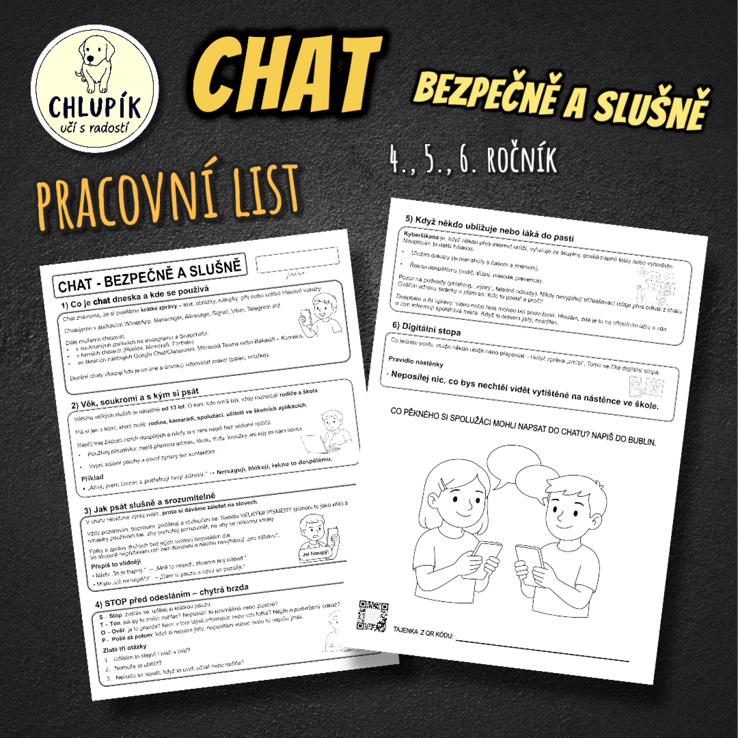 • Pracovní list: Chat - bezpečně a slušně (A4, ČB)