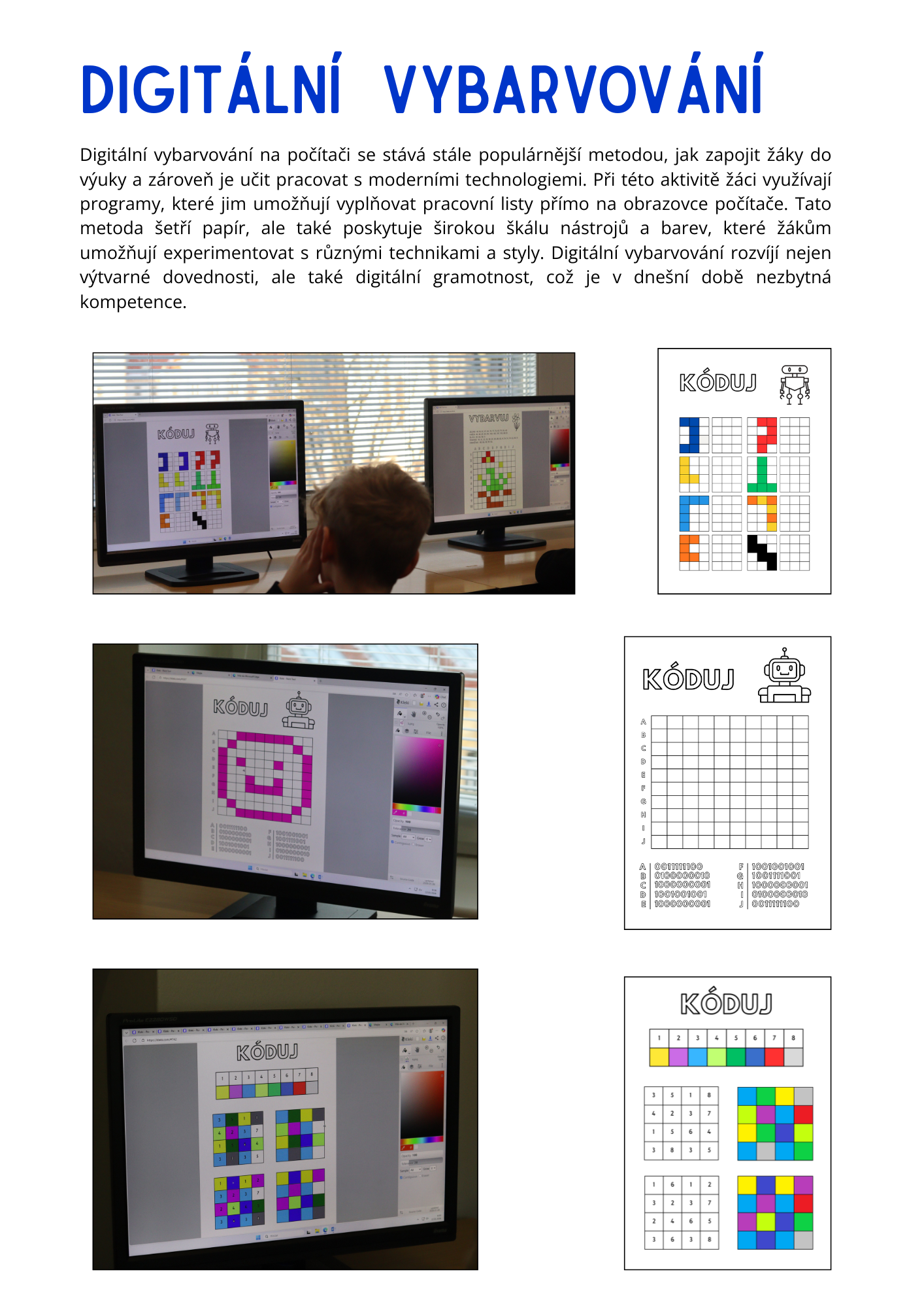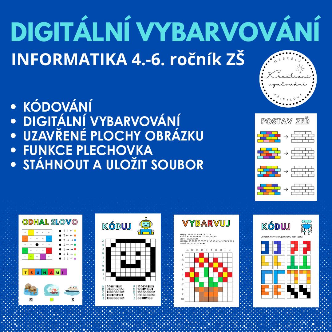 Materiál slouží k práci se soubory a digitálnímu vybarvování v programu Malování nebo v jiném jednoduchém grafickém editoru v hodině informatiky ve 4.-6. ročníku ZŠ. Lze využít i k unplugged aktivitám, vytisknout a vyplnit pastelkami.