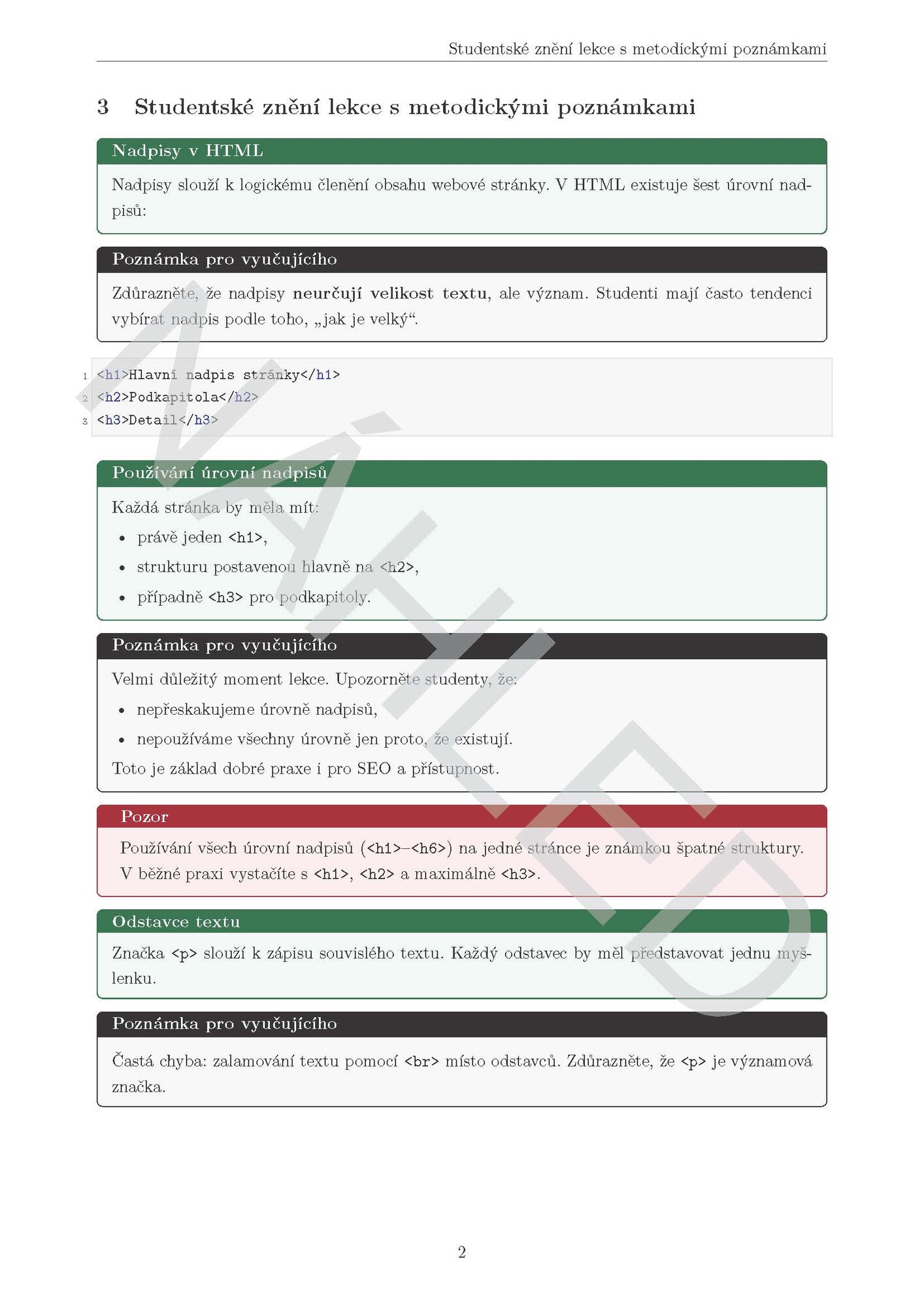 - Učitelské PDF – metodické poznámky, doporučený postup výuky a řešení cvičení,