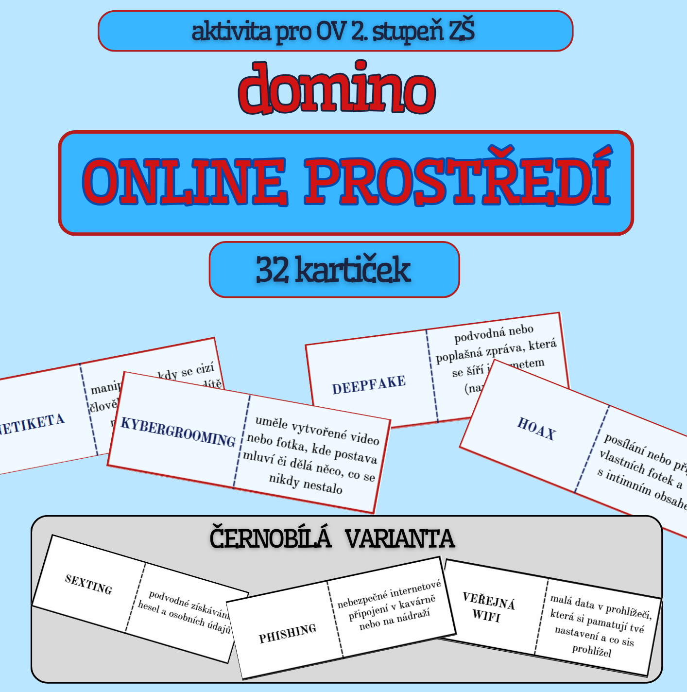 Tento materiál obsahuje hru typu DOMINO, ve které si žáci procvičí znalost pojmů v oblasti ONLINE PROSTŘEDÍ.