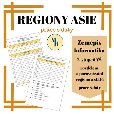 Tento materiál slouží k seznámení žáků s regionálním členěním Asie. Zároveň v tomto materiálu pomocí dat (rozlohy a počtu obyvatel) jednotlivé regiony a státy daných regionů mezi sebou porovnávají.