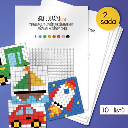 Podle nápovědy v podobě barevné palety děti vybarvují jednotlivé čtverečky. Postupně se jim odkrývá veselý obrázek.