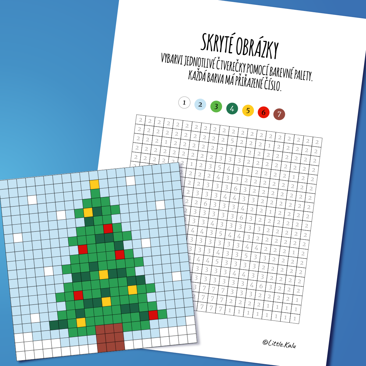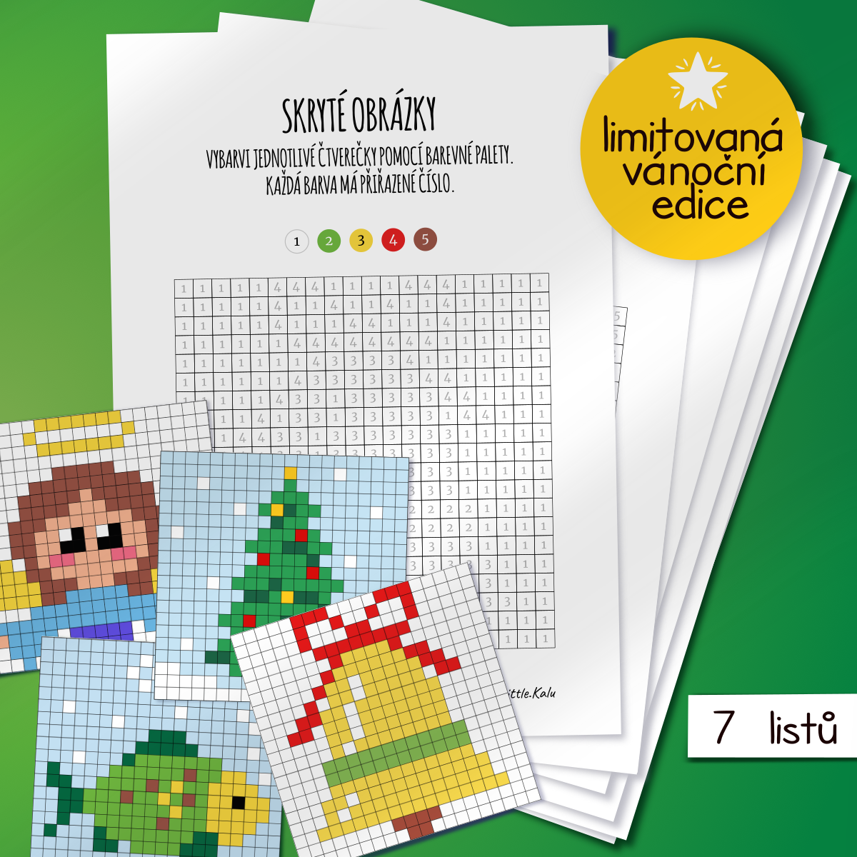 PDF soubor obsahuje 7 listů se skrytými obrázky na téma Vánoce. Jedná se o LIMITOVANOU SADU dostupnou jen do 24.12.2025 :).