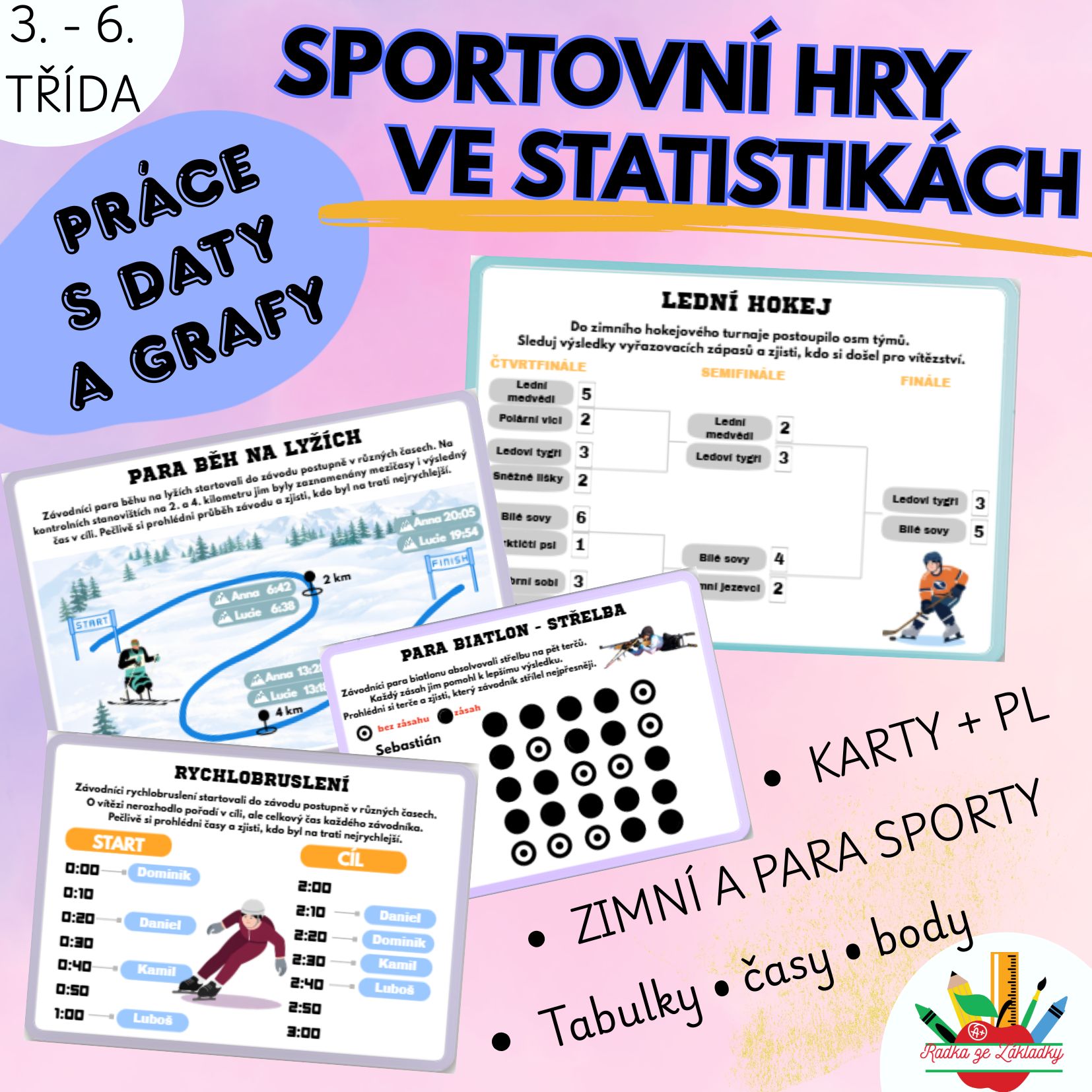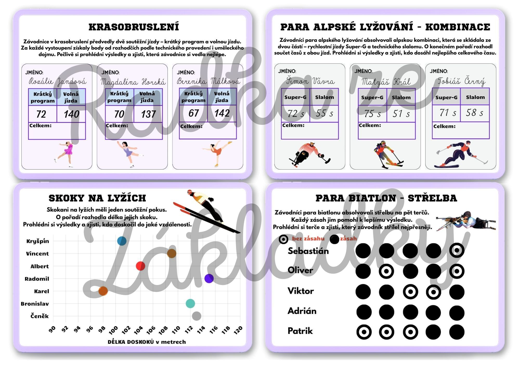 Materiál rozvíjí práci s daty a matematickou gramotnost na reálném sportovním kontextu (zimní sporty a parasporty).