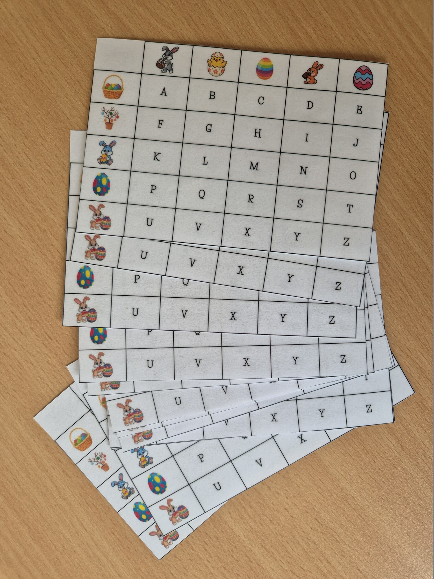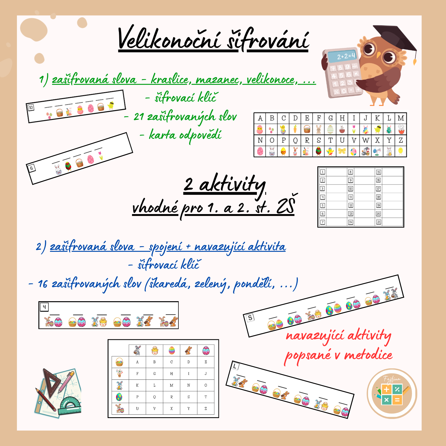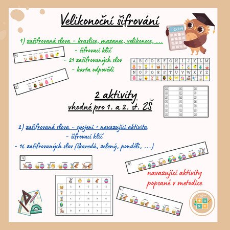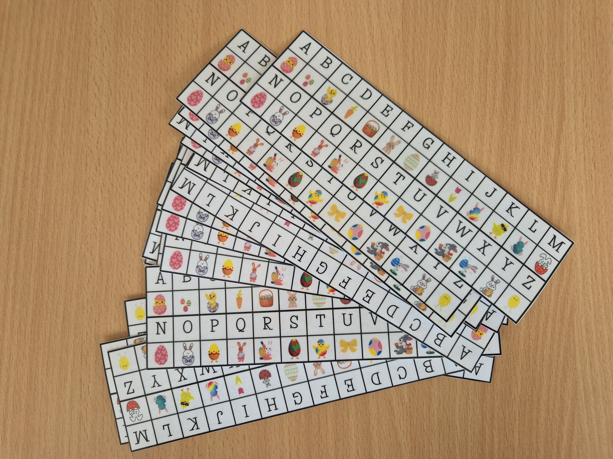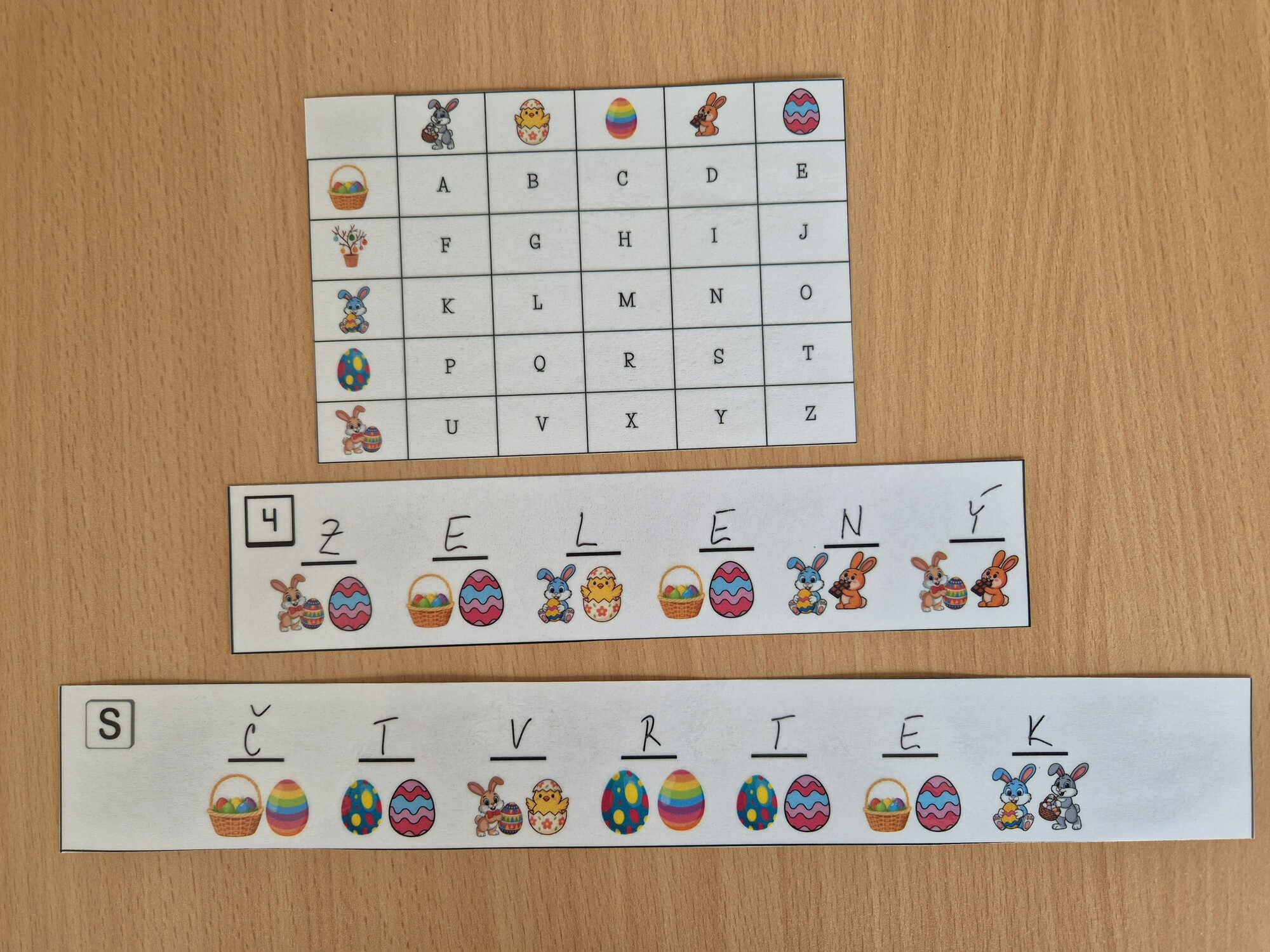 3) Vytiskněte kartičky se zašifrovanými slovy, rozstříhejte je a rozmístěte po učebně či venku (případně je vytiskněte přímo do lavic pro skupiny či jednotlivce).