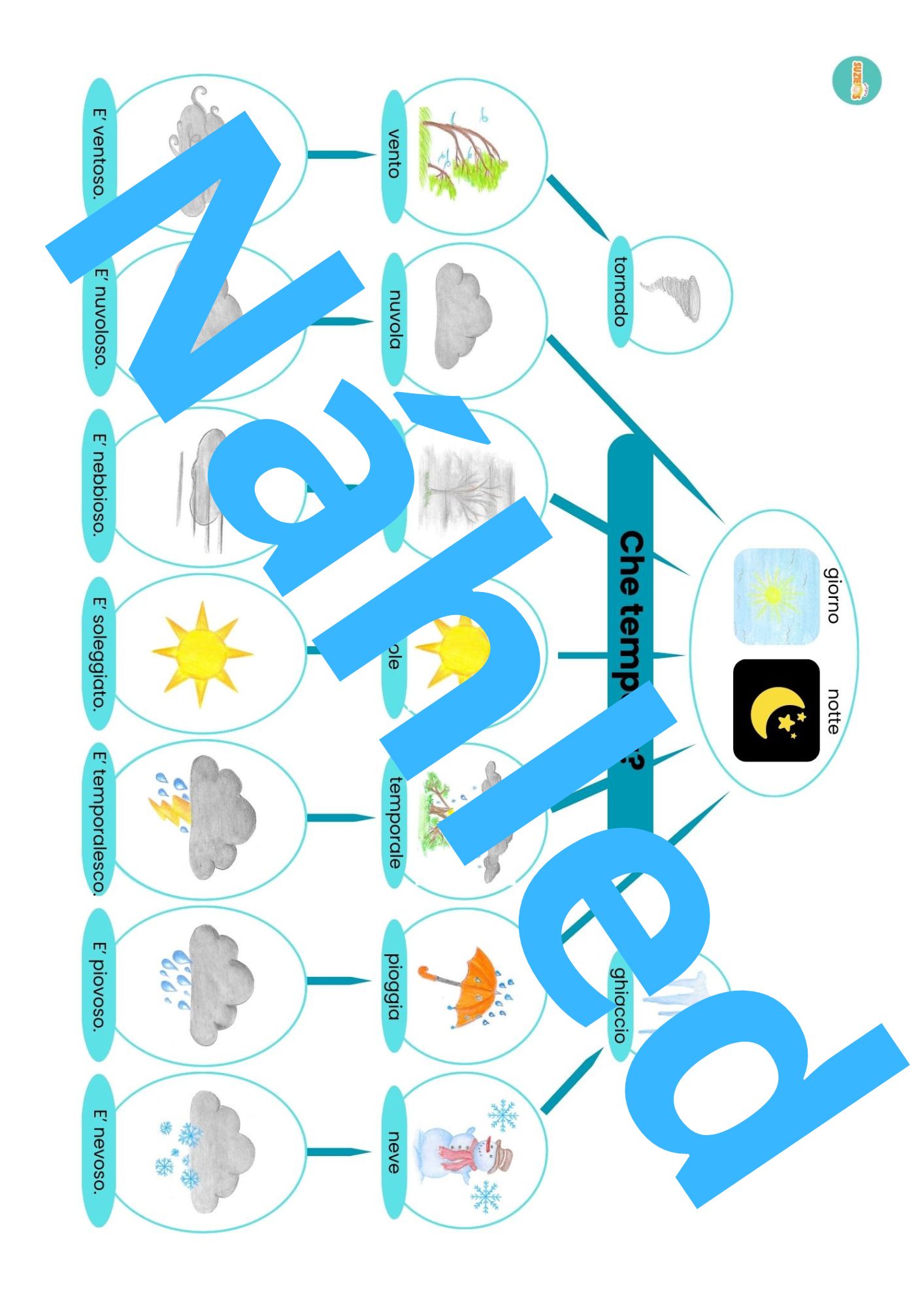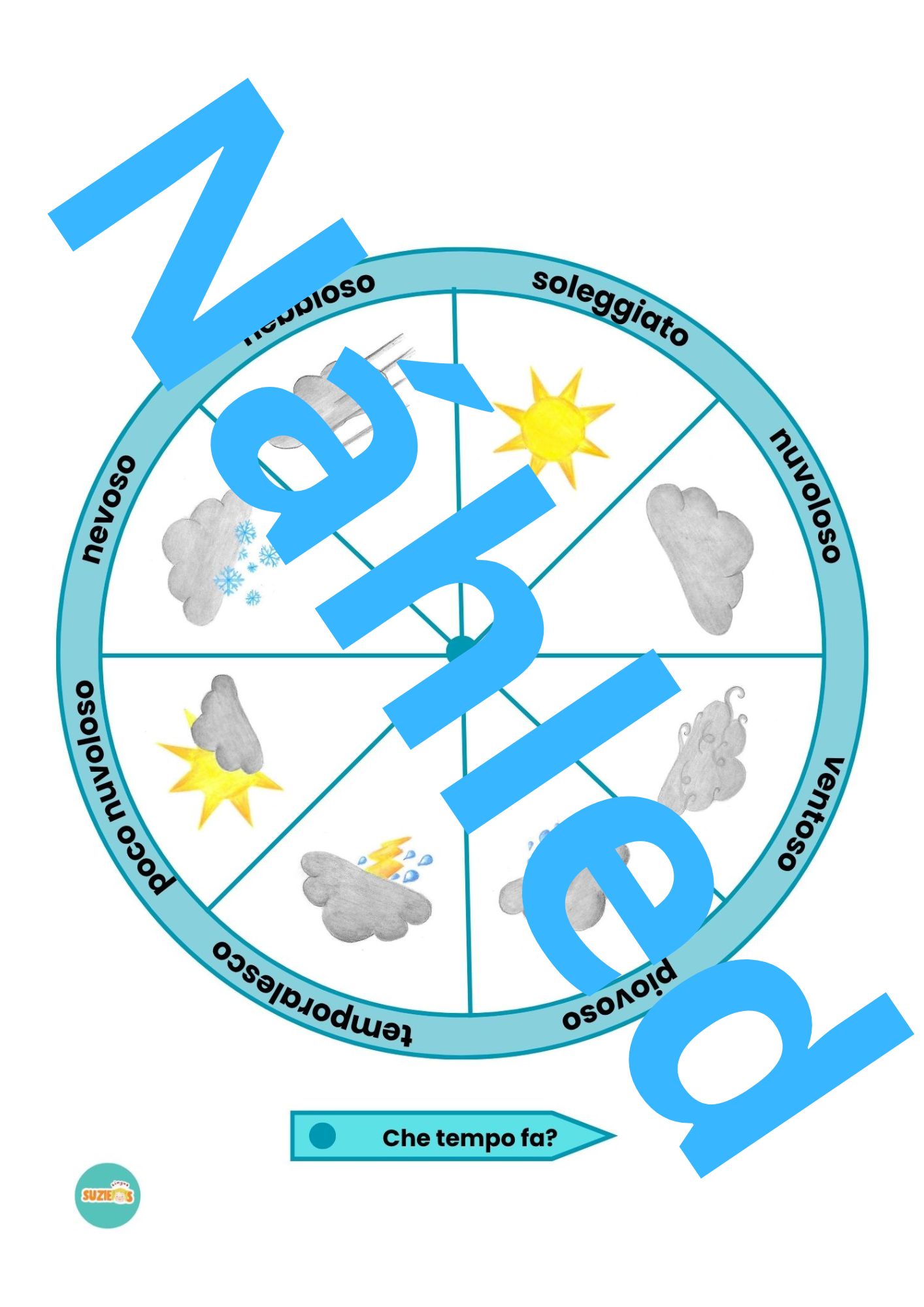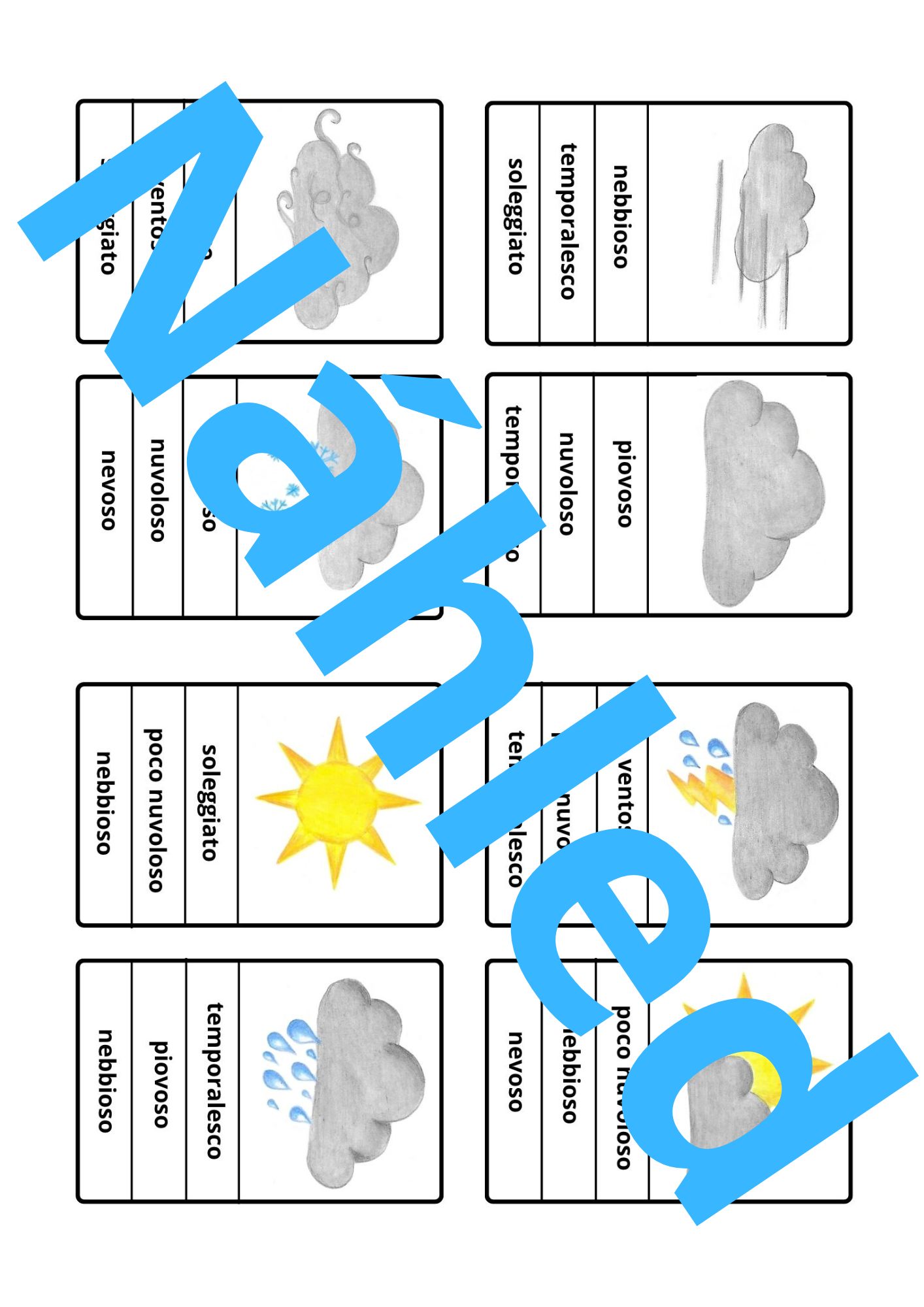 Sada počasí / meteo obsahuje 2 plakáty s přehledem počasí, 10 demonstrační karet, spinner, kolíčkové karty, obrázkový slovník s výslovností a manuál jak se sadou pracovat.