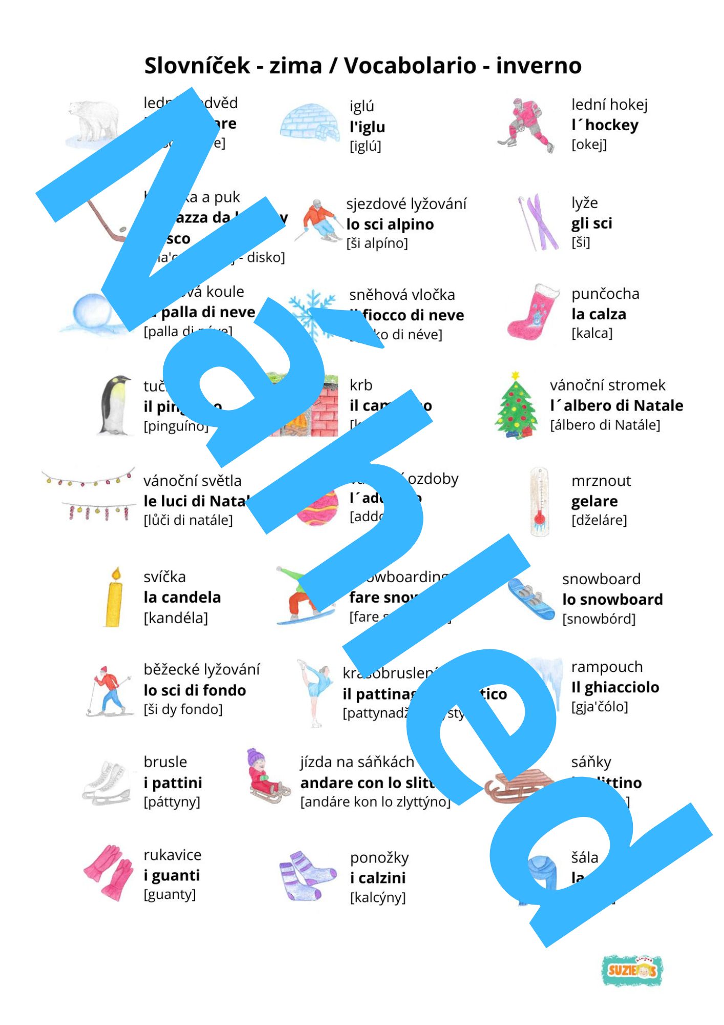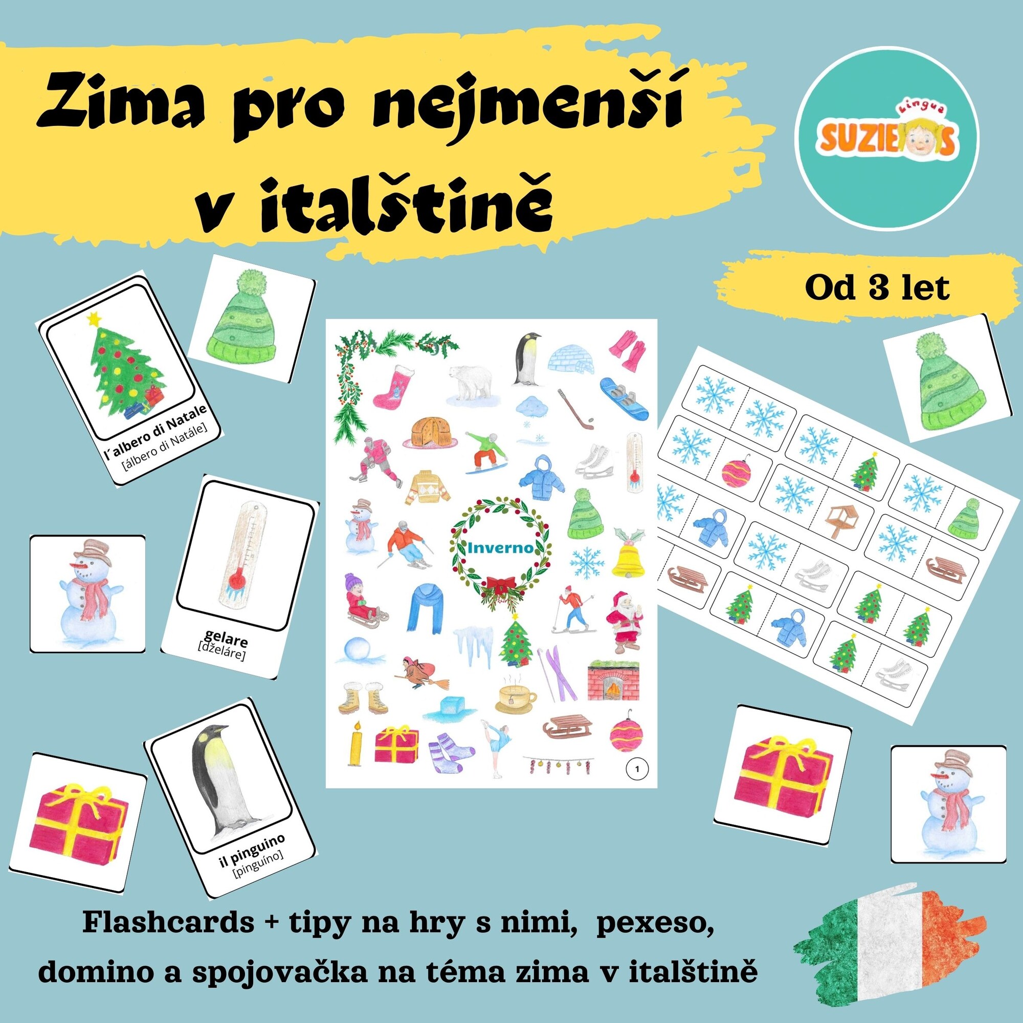 Sada aktivit na téma zima obsahuje flashcards, domino, pexeso, spojovačku, obrázkový slovníček s výslovností a manuál. V manuálu najdete tipy na aktivity s flashcards a jak pracovat se spojovačkami.