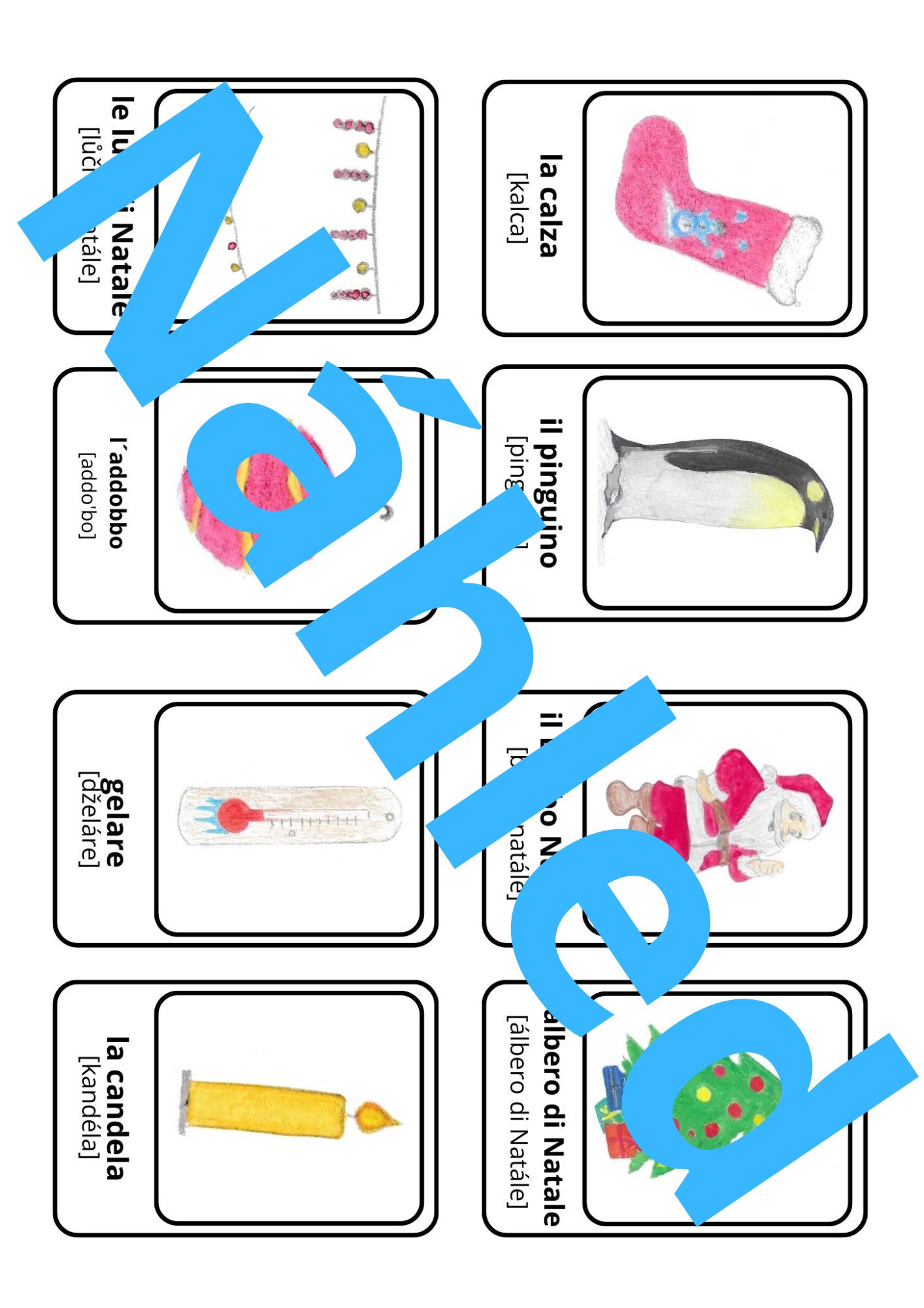 Materiál obsahuje 39 flashcards na téma léto s italskými názvy a výslovností, 5 karet spojovaček název + slovíčko