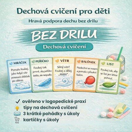 PDF materiál ze série Bez drilu. Dechová cvičení jsou pojatá jako hra, pohyb a příběh, díky čemuž děti spolupracují přirozeně a s chutí.