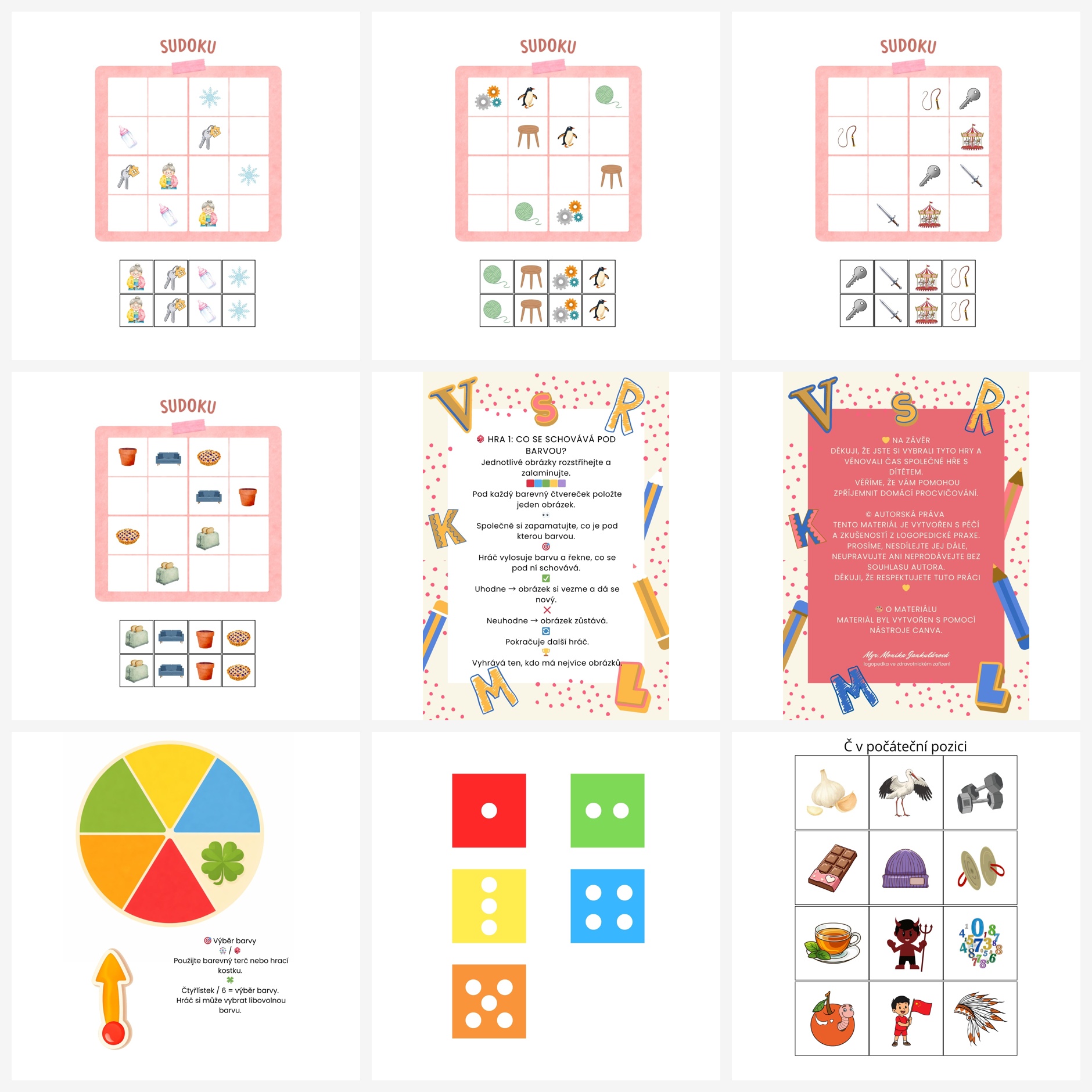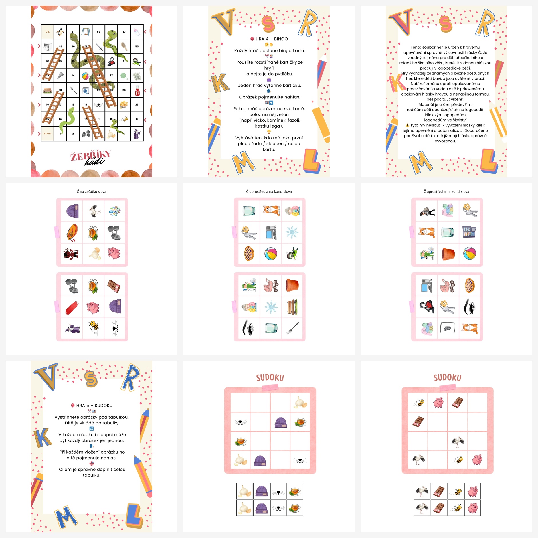 ✔️ Hry pro trénink správné výslovnosti hlásky Č - Co se tam schovává?, Bingo, Sudoku, Žebříky a hadi, Nebe - peklo - ráj