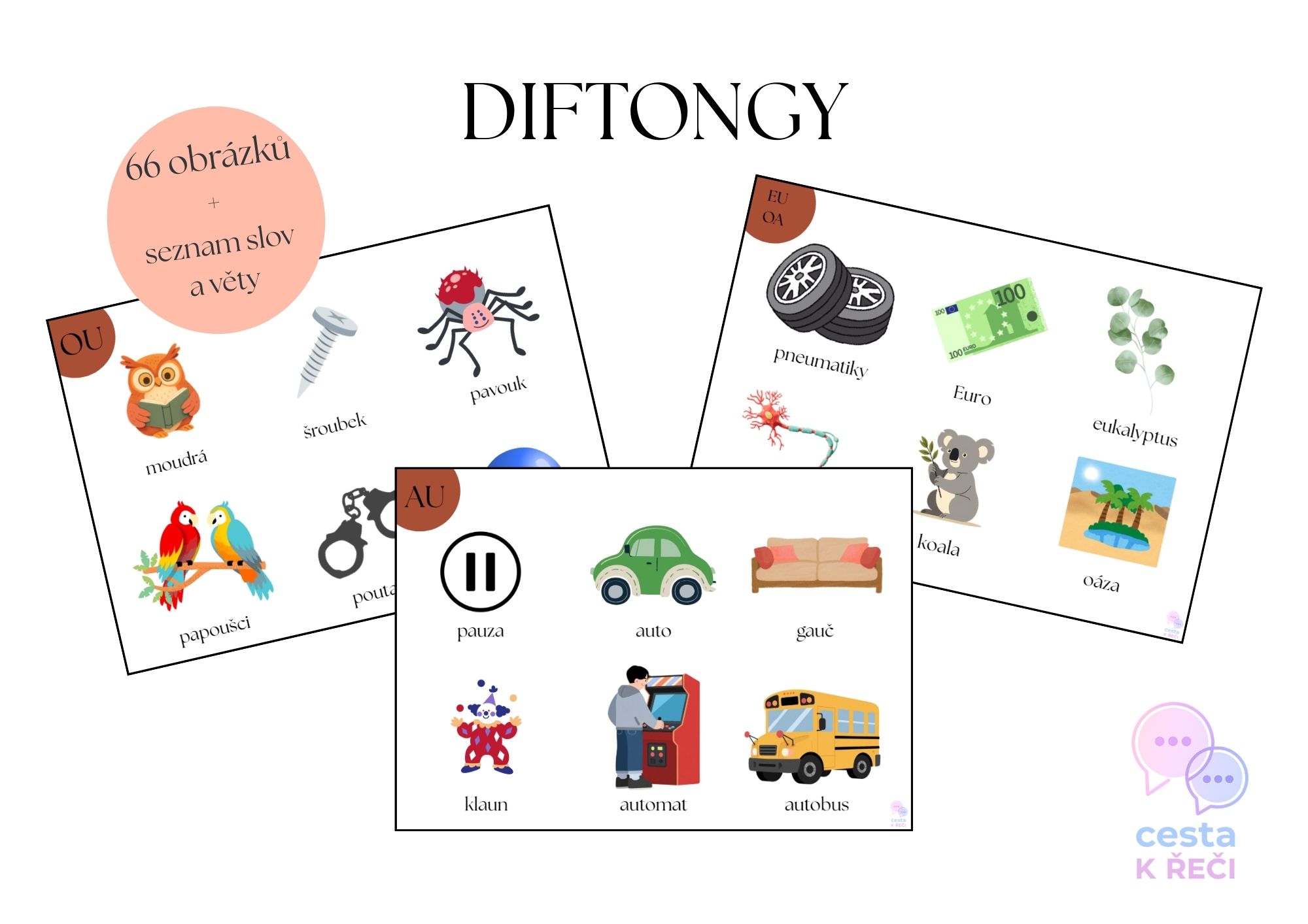Pozor: materiál nenahrazuje logopedickou péči. Doporučujeme poradit se s logopedem, zda je vhodné diftongy již v řeči fixovat.