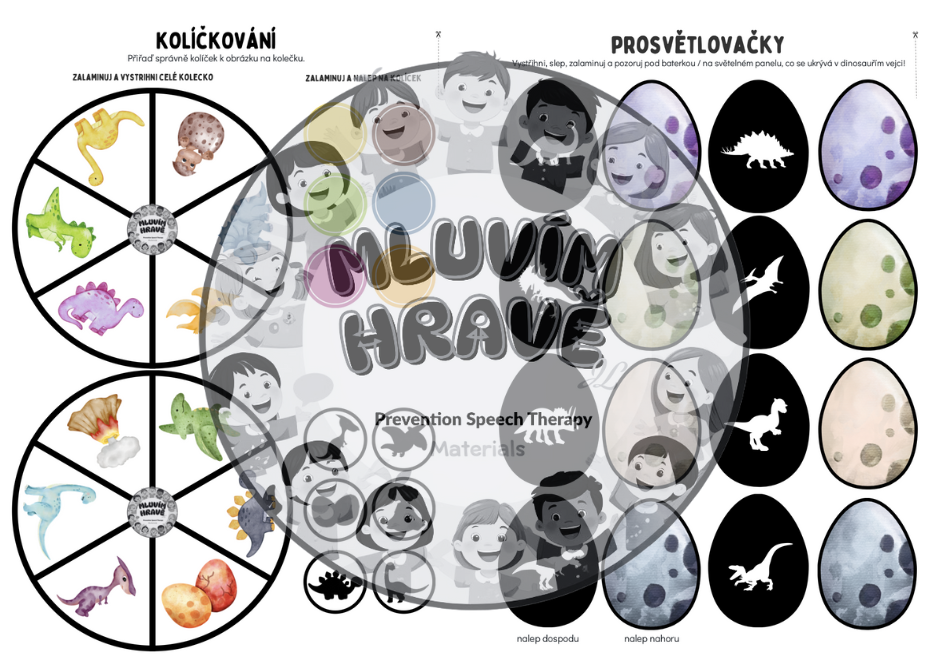 - 5 pracovních listů s dinosauří tematiko (grafomotorika, počítání, zraková diferenciace a prostorová orientace)