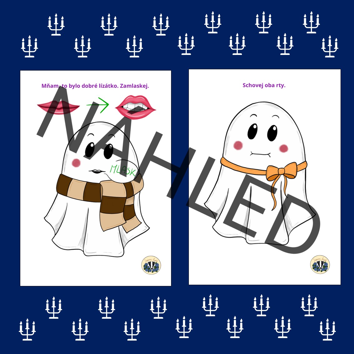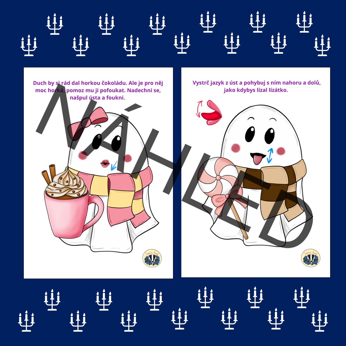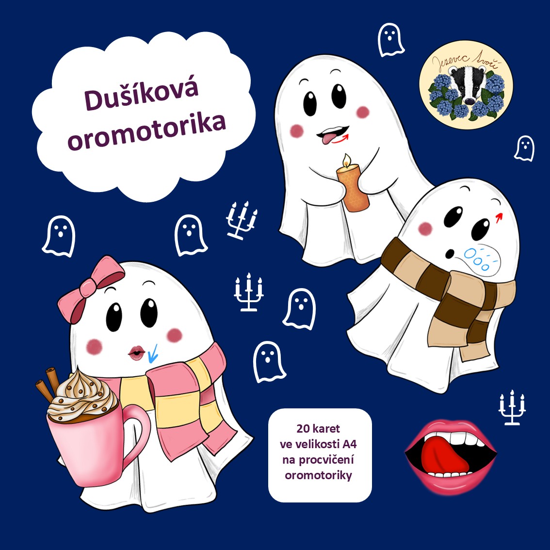 ♥ 20 karet zaměřujících se na rozvoj oromotorických a logopedických dovedností. Tyto cviky jsou namotivované čtyřmi různými dušíky.