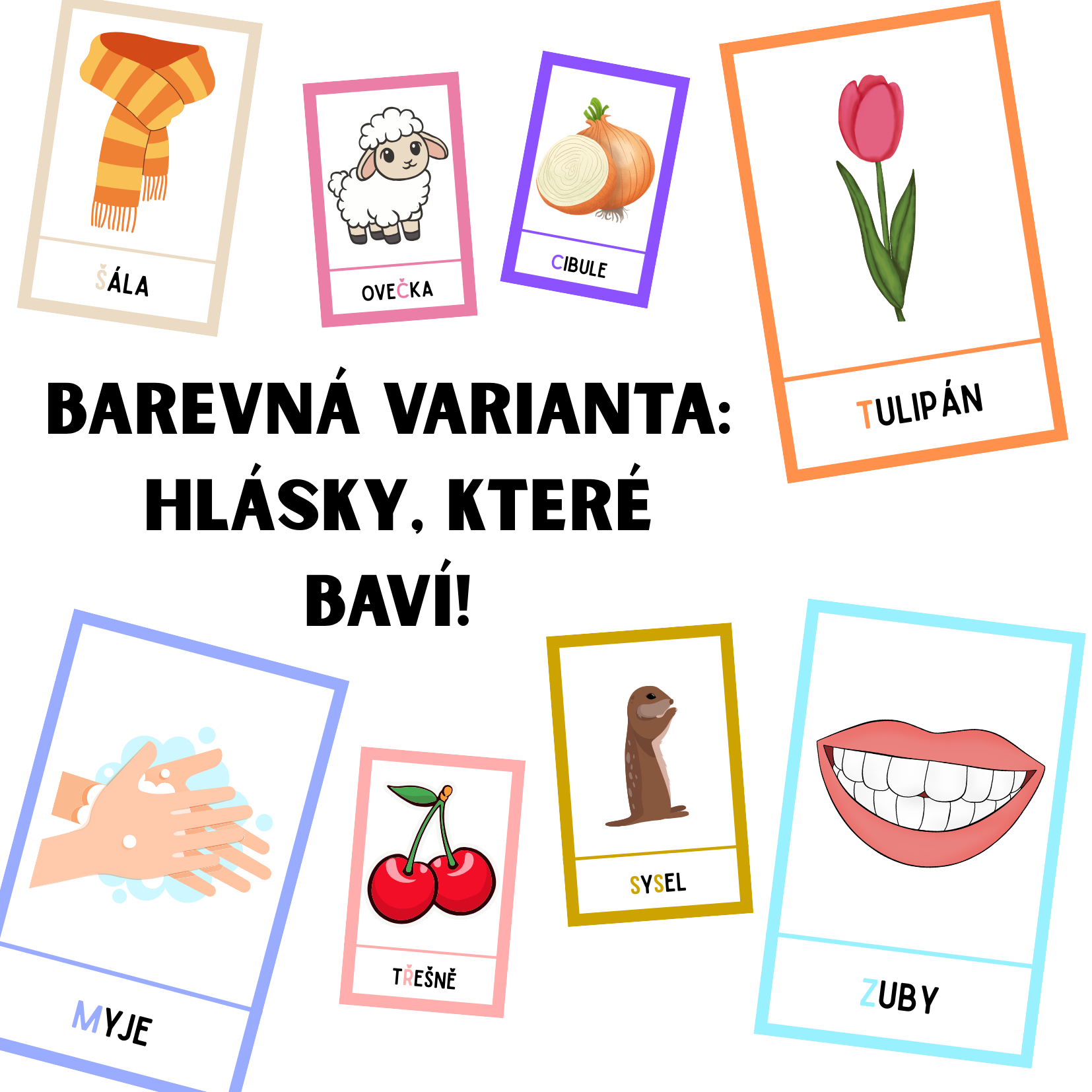 🧠 Jak s ní pracovat? Třiďte, hledejte, pojmenovávejte, soutěžte! Kartičky můžete využít při skupinové práci, individuálním procvičování nebo jako součást jazykových center. Barevná varianta je ideální pro první kontakt s hláskami – motivuje, zaujme a učí.