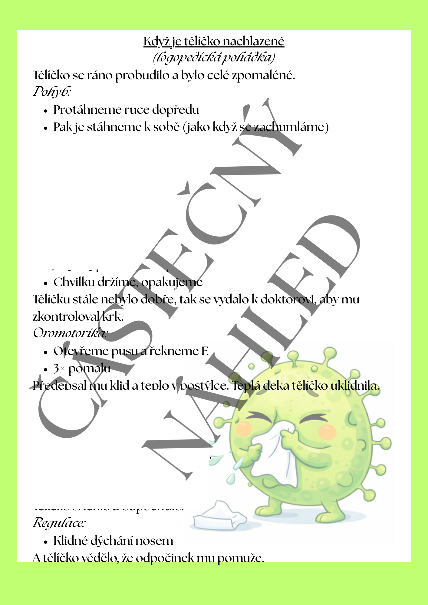 Vhodné pro děti v MŠ, k tematickému období Rýma, kašel a nachlazení.