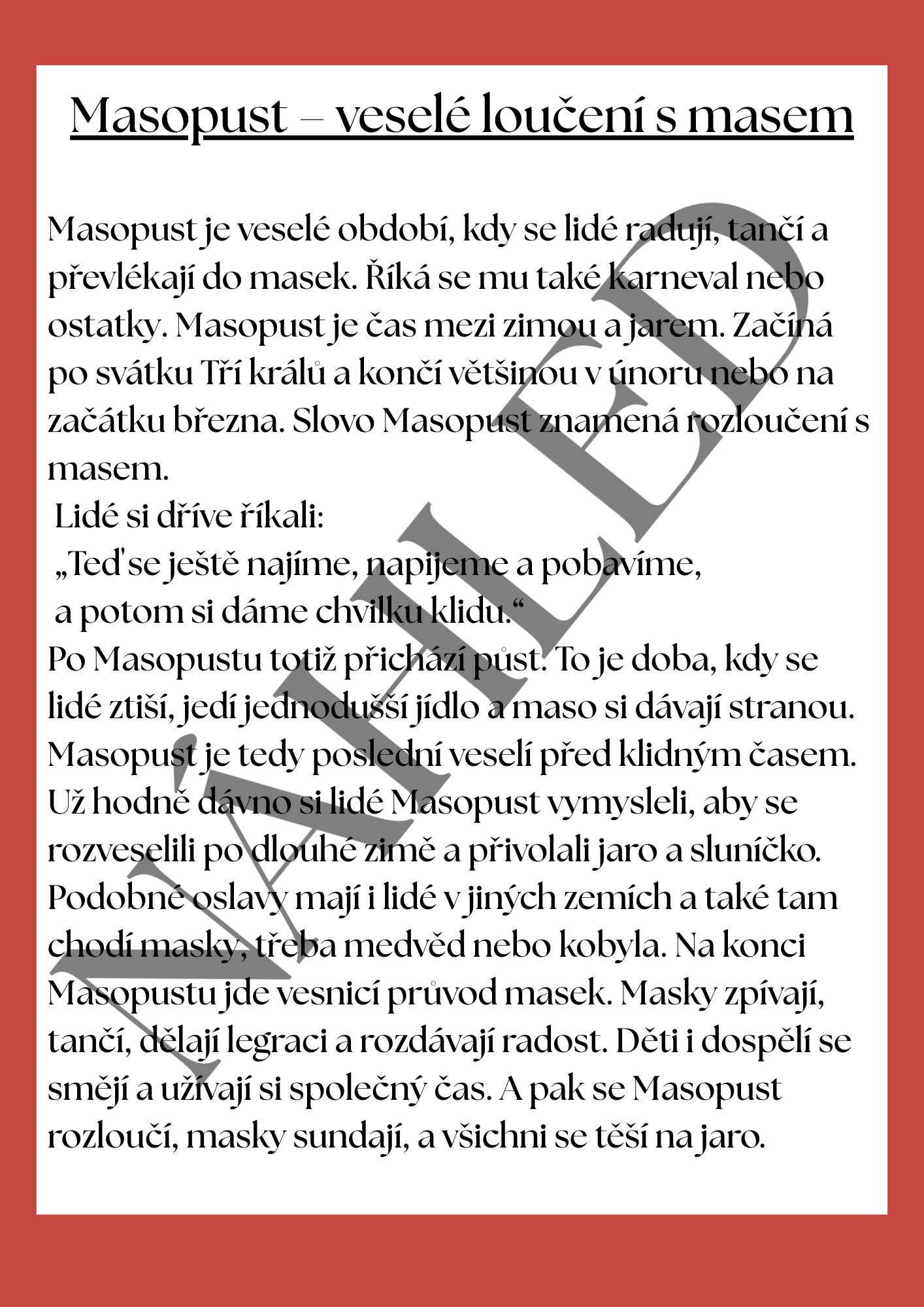 - masopustní logopedickou pohádku + dopomocné obrázky