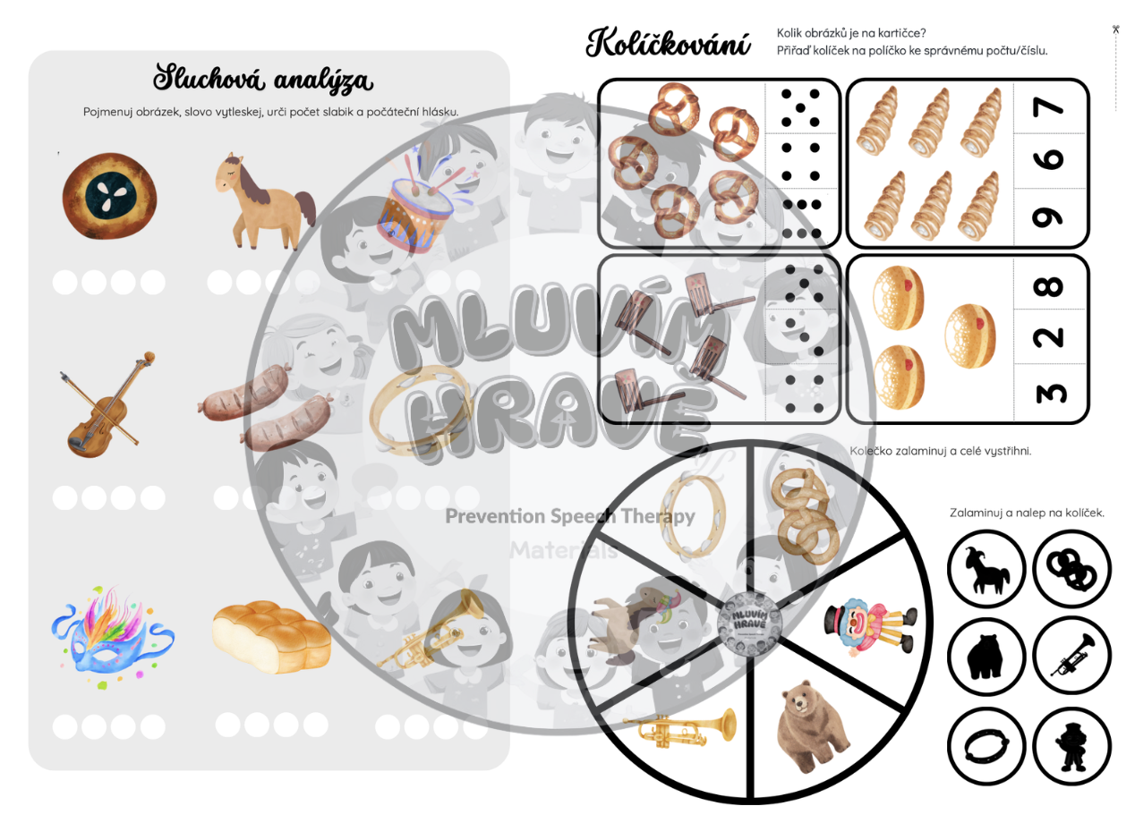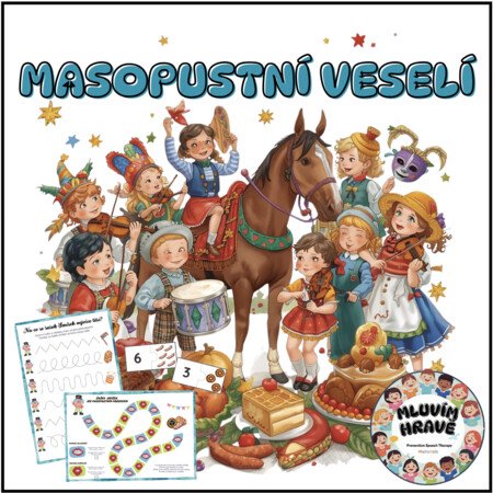 Soubor deseti hravých aktivit s tematikou MASOPUSTU je zaměřen na komplexní rozvoj dítěte prostřednictvím přirozené hry. Jednotlivé činnosti podporují rozvoj celé řady klíčových oblastí důležitých pro předškolní a mladší školní věk. Aktivity konkrétně procvičují spoustu dovedností, jako je jemná motorika, grafomotorika, motorika mluvidel, zraková analýza, sluchové vnímání, matematické představy, slovní zásoba a prostorová orientace.