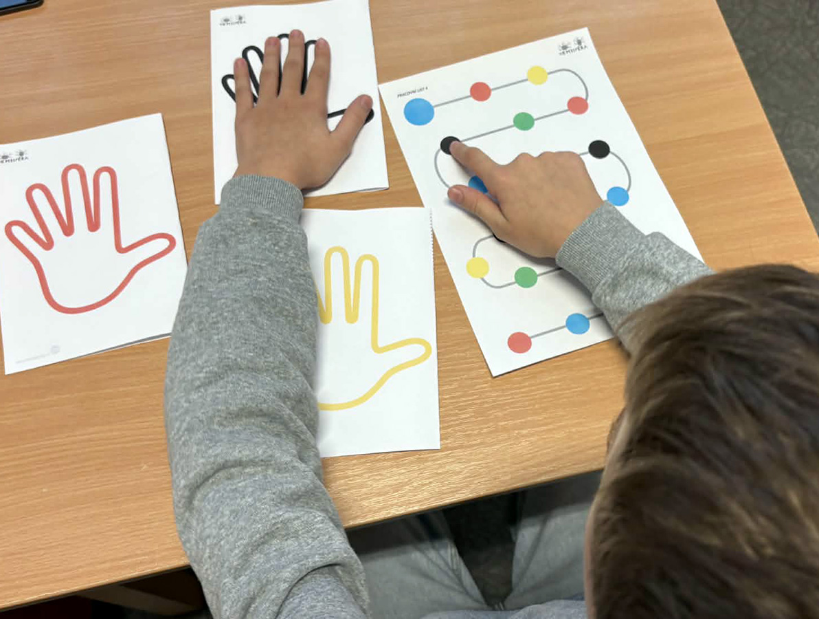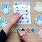 Vystřihnete si obrázky dlaní, barevných koleček a podkladové pracovní listy pro nácvik.