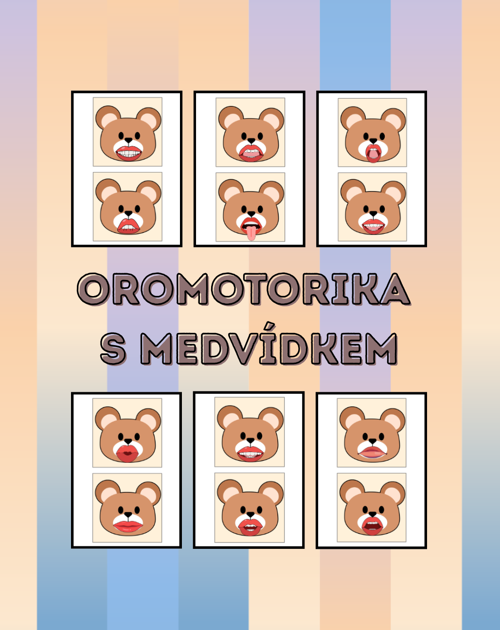 - 12 oromotorických karet (dvě na A4) s motivem medvídka