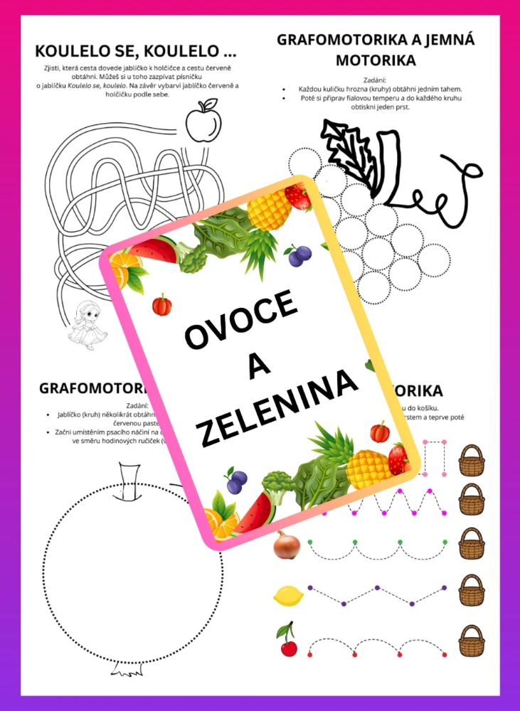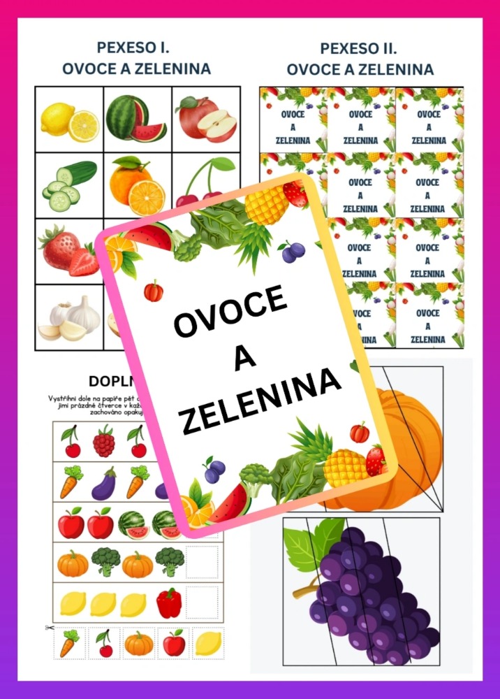 - str. 28 - 32 - Puzzle ovoce a zeleniny (celkem 10 obrázků připravených k rozstříhání podle čar)