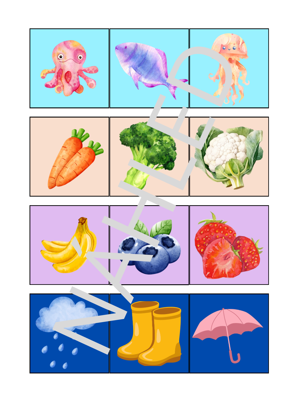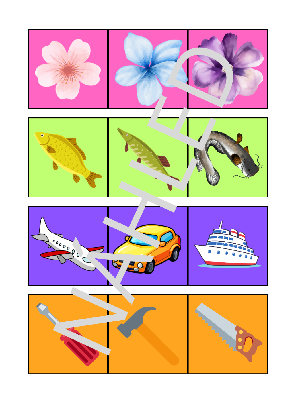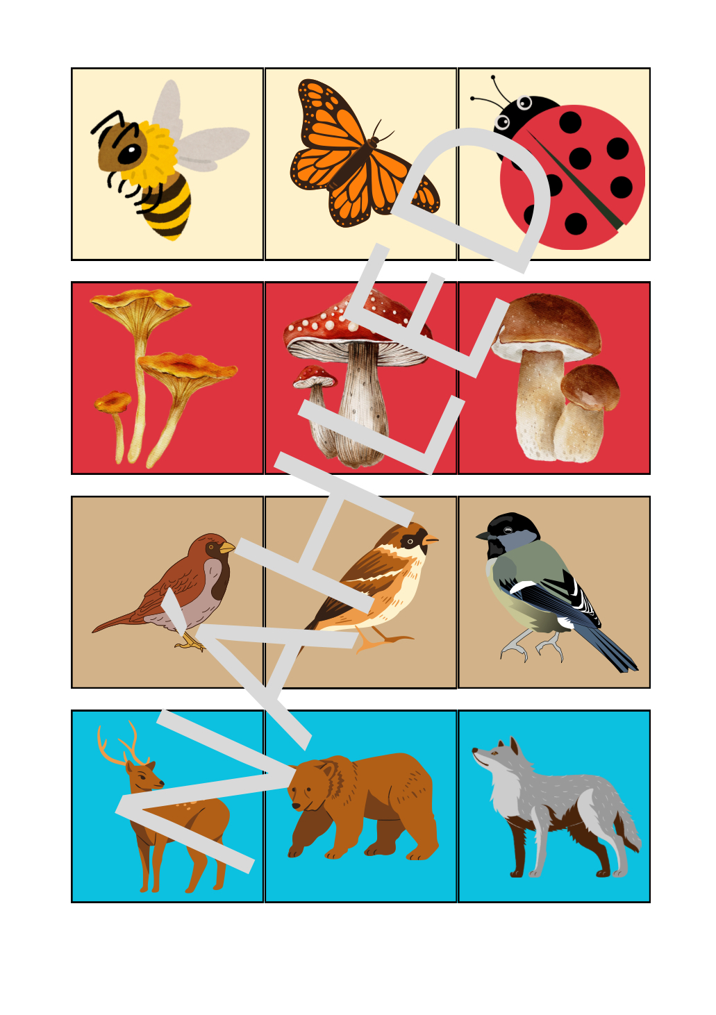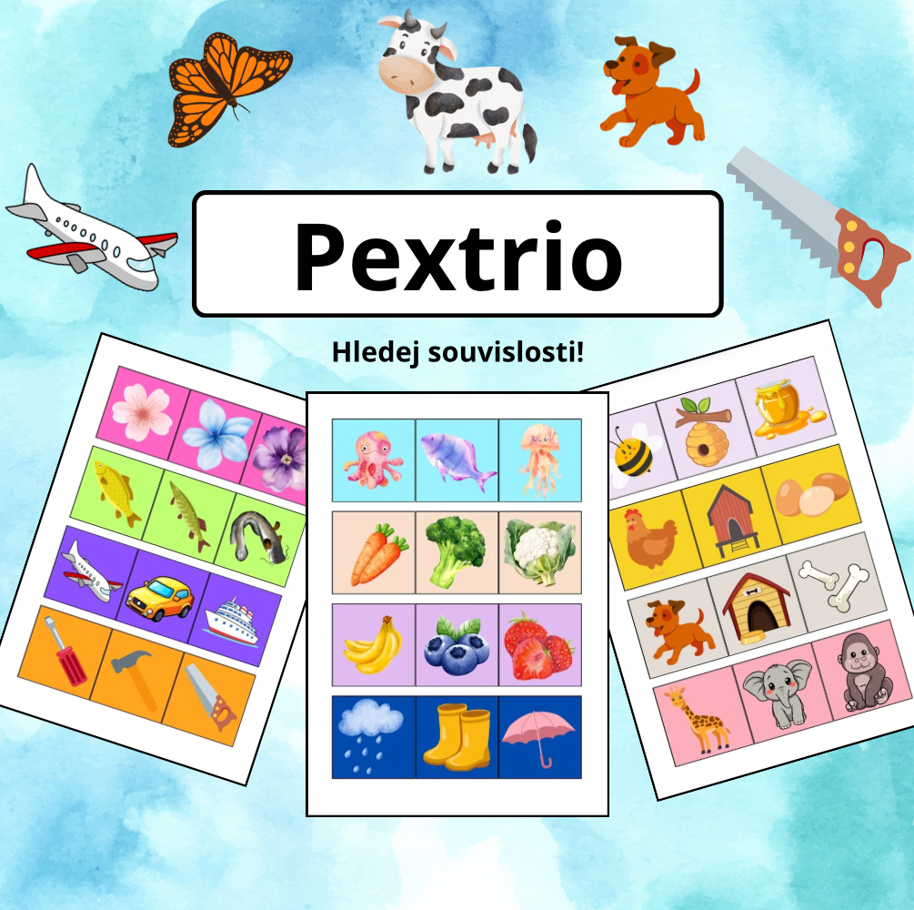 Najdi tři karty, které k sobě patří! Hra rozvíjí pozorovací schopnosti, logické myšlení a přirozenou zvídavost dětí.