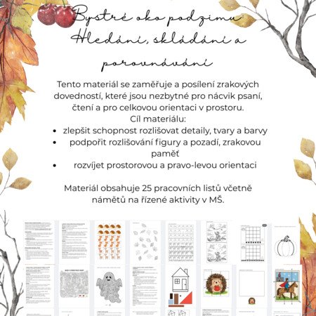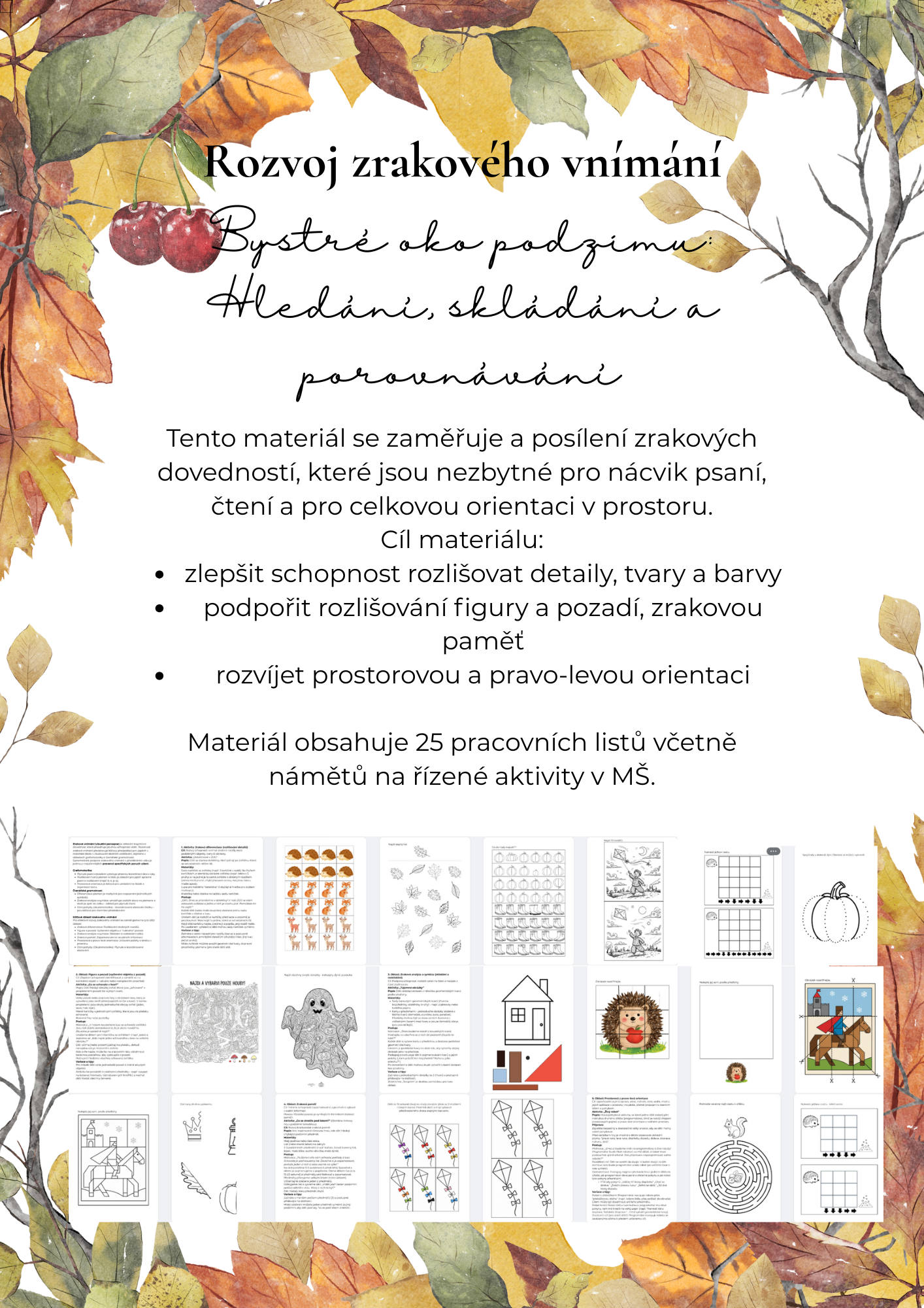 Hravý soubor 25 pracovních listů, které rozvíjí zrakové vnímání dětí – klíčovou dovednost pro čtení, psaní i prostorovou orientaci.
