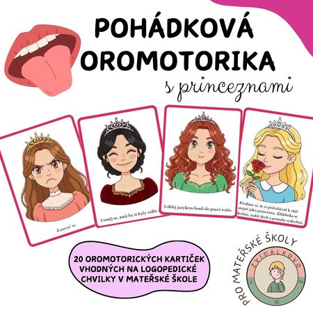 Zvídálkovo Pohádková oromotorika je soubor 20 demonstračních kartiček, které jsou vhodné k procvičování a uvolňování mluvidel.