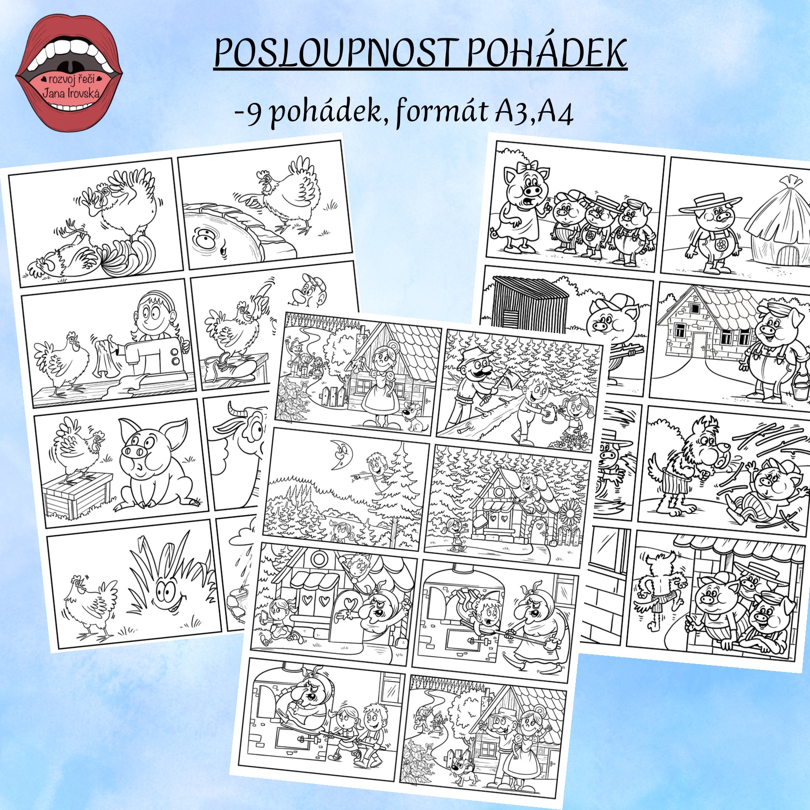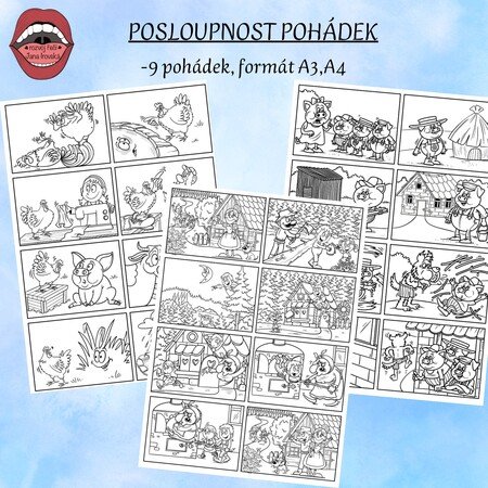 Soubor obsahuje karty k posloupnosti pohádek (1 karta na A5), k jedné pohádce je 8 karet. Seznam pohádek: O ČERVENÉ