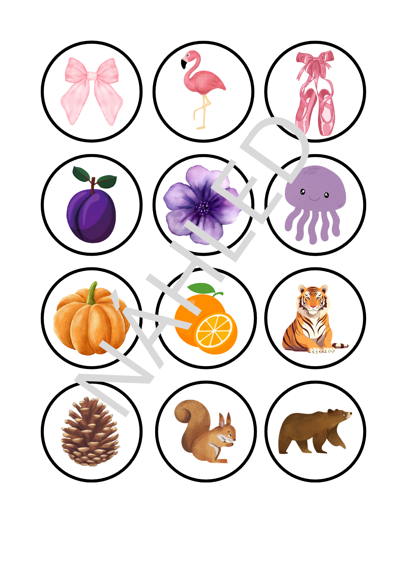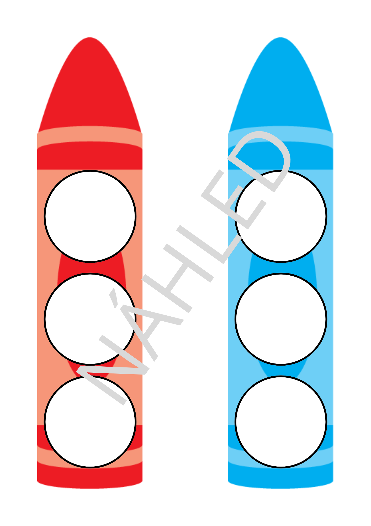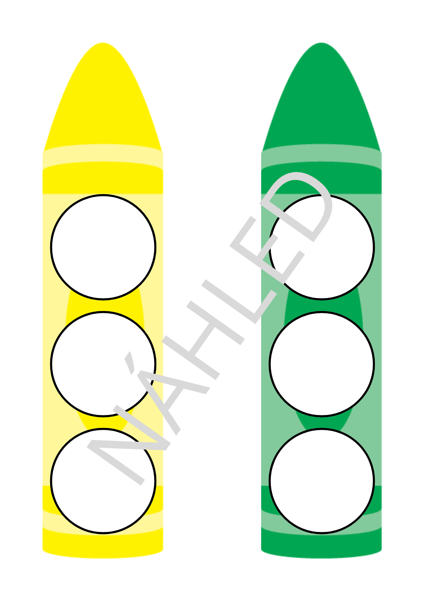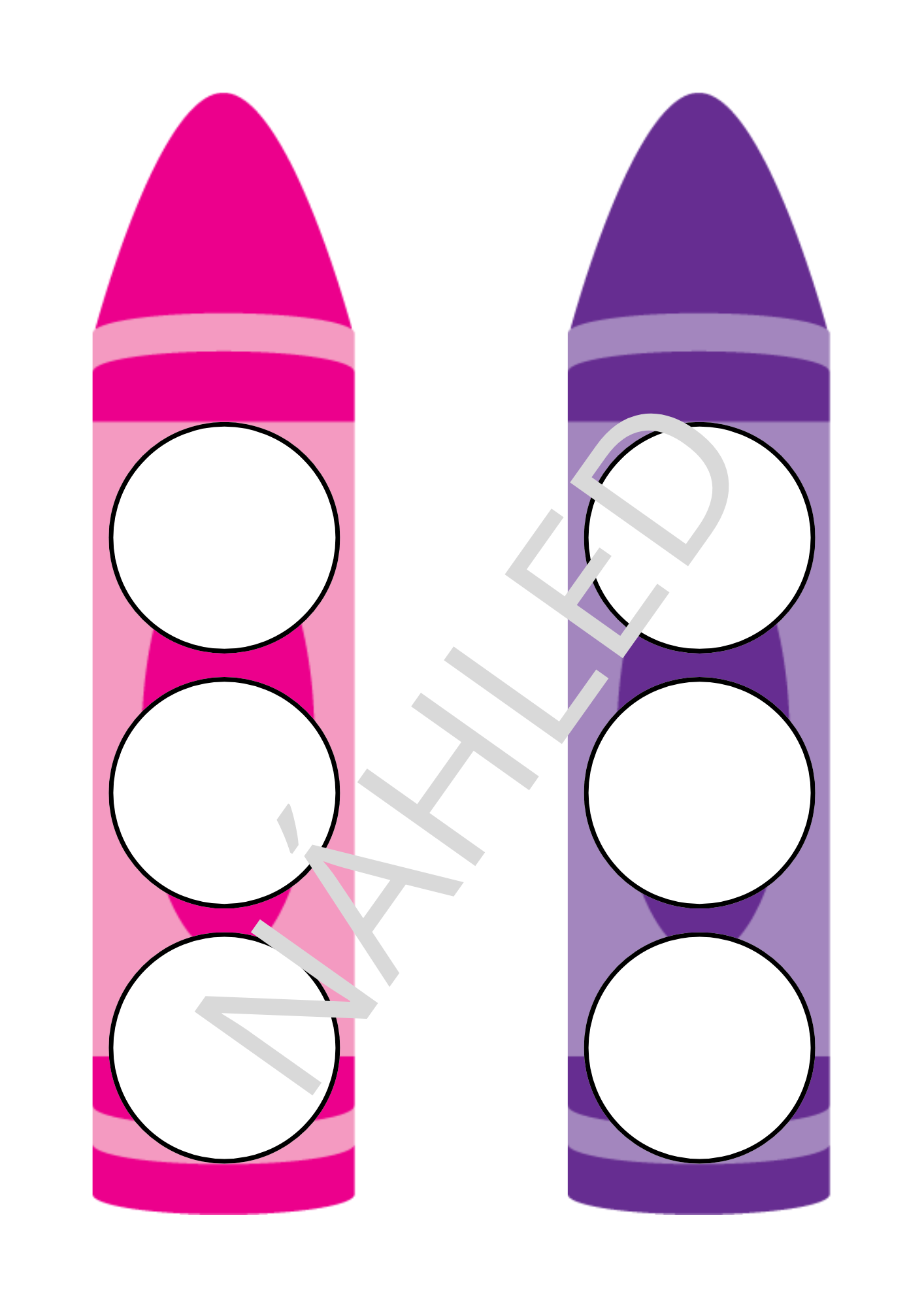 Soubor obsahuje: 10 pastelek různých barev a 30 koleček s obrázky.