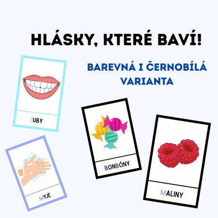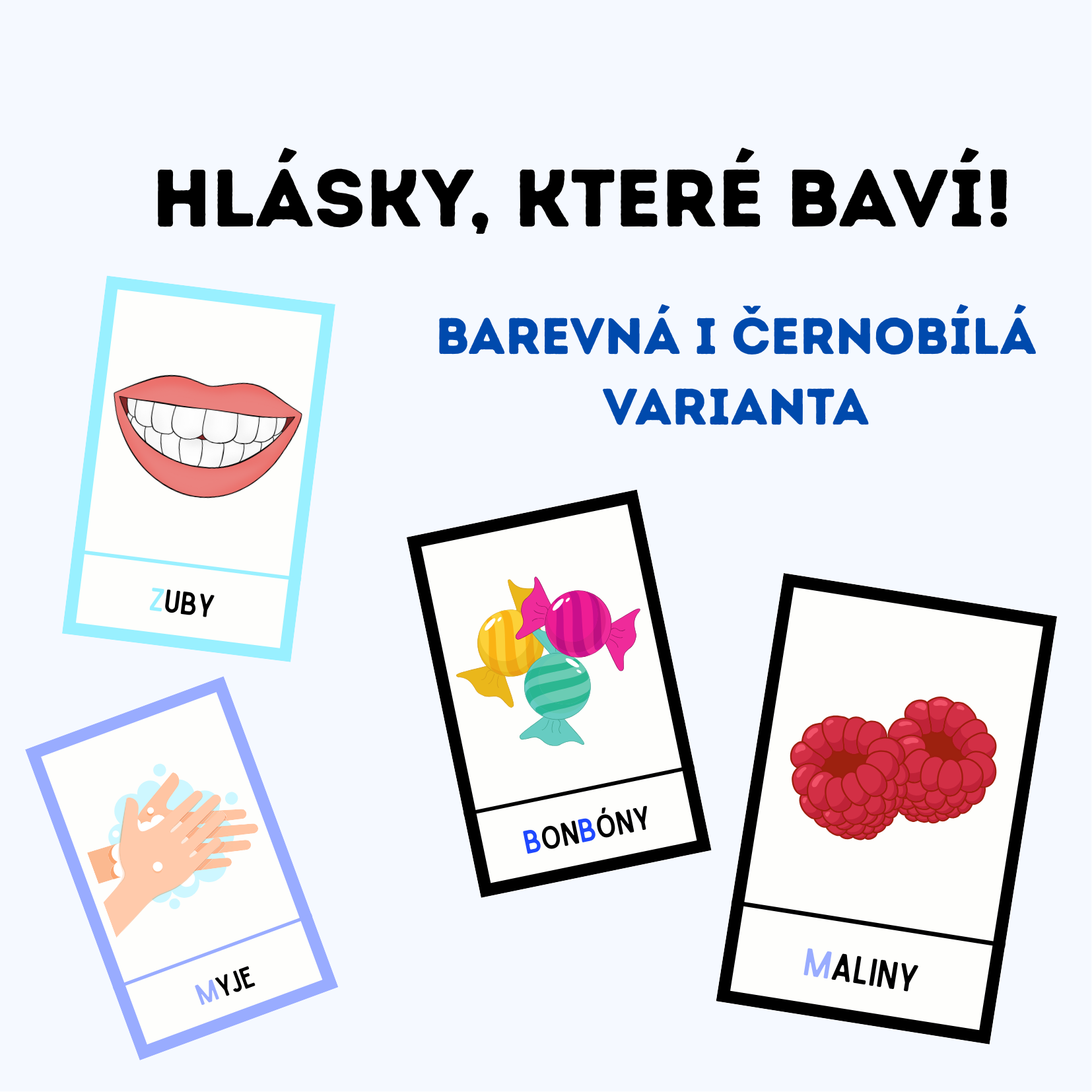 Tato komplexní sada kartiček je navržena pro hravé a efektivní procvičování hlásek českého jazyka. Obsahuje 24 hláskových sad: M, B, P, N, D, T, F, V, K, L, J, CH, H, Ď, Ť, Ň, C, S, Z, Č, Š, Ž, R, Ř. Ke každé hlásce najdete 7 obrázkových kartiček se slovem, ve kterém se daná hláska vyskytuje. Hláska je ve slově zvýrazněna, aby ji děti snadno objevily a mohly si ji spojit se zvukem, tvarem i významem.